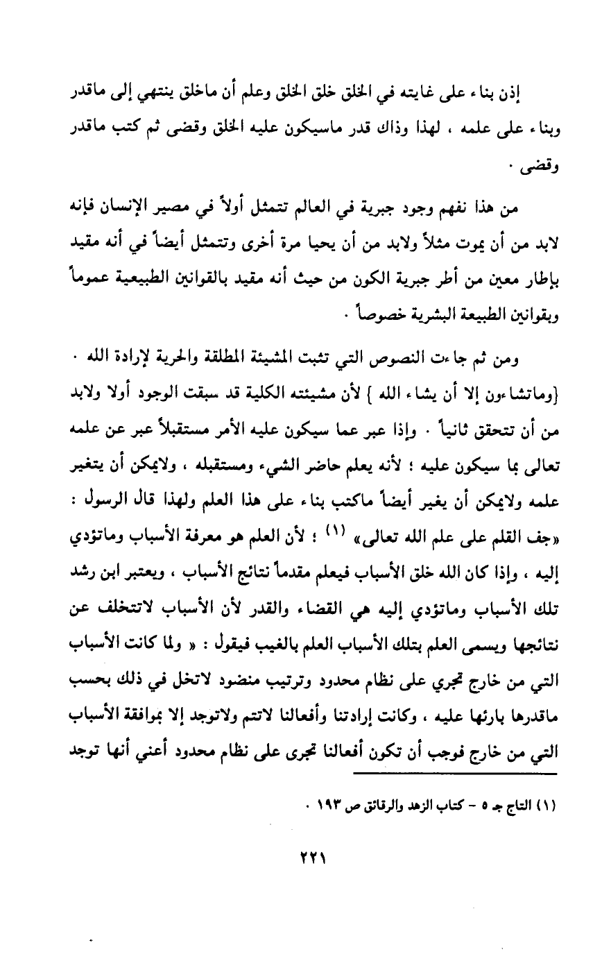 وأخيراً لا يلزم من علمه تعالى أن الإنسان سيرتكب الشر، أنه بذلك أراد الشر بل إن علمه هذا لا يعتبر إرادة. فإنني عندما أضع أسئلة للامتحان مثلاً أعلم أن هناك من الممتحنين من يرسب في الامتحان ولكنني بذلك لم أرد رسوب أي إنسان ولا يرجع سبب سقوطه إلي بل يرجع إلى نفسه.