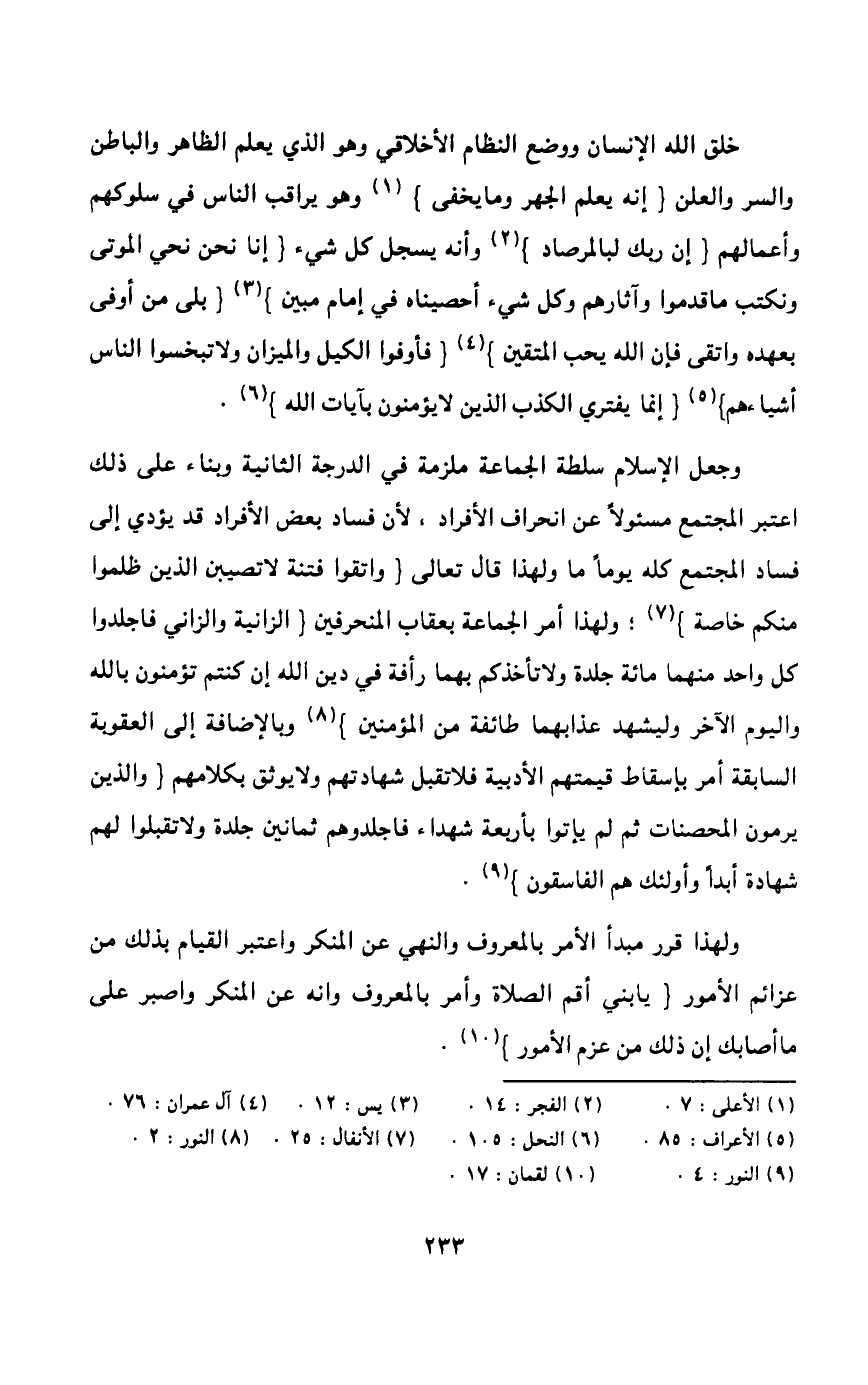 القدر المفروض عليه من الزكاة، وهذه هي الفضيلة بمعنى الكلمة، أما الزكاة فهي ضريبة لا بد منها ولا يدل آداؤها على حبه للفضيلة والإحسان إذا اقتصر عليها مع إمكانه أن يزيد فيها. وإن كانت درجة المسئولية والجزاء تختلف فيما بينهم، غير أن هذه الأعمال الفاضلة مشروطة أيضاً بأن لا تؤدي مواصلتها إلى إهمال الواجبات الأخرى وأن لا تؤدي كذلك إلى نقض قوانين الحياة، فمثلاً لا ينبغي أن ينفق الإنسان جميع ماله وبالتالي لا يجد مأكلاً ولا مأوى؛ ولهذا قال تعالى: {وَلا تَجْعَلْ يَدَكَ مَغْلُولَةً إِلَى عُنُقِكَ وَلا تَبْسُطْهَا كُلَّ الْبَسْطِ فَتَقْعُدَ مَلُوماً مَحْسُوراً} 1، وكذلك لا يجوز للإنسان أن ينقطع للصوم حتى يترك الكسب أو حتى يموت، كذلك لا ينبغي أن تكون مواصلته لفضيلة ما تجعله يهمل الواجبات الأخرى؛ ولذا نهى الرسول بعض الذين عزموا على مواصلة بعض العبادات مثل: الصلاة والصوم، فقال الرسول لعبد الله بن عمرو بن العاص لما علم أنه يواصل العبادة: "صم وأفطر وقم ونم فإن لجسدك عليك حقاً وإن لعينيك عليك حقا وإن لزوجك عليك حقاً وإن لزورك عليك حقاً" 2.