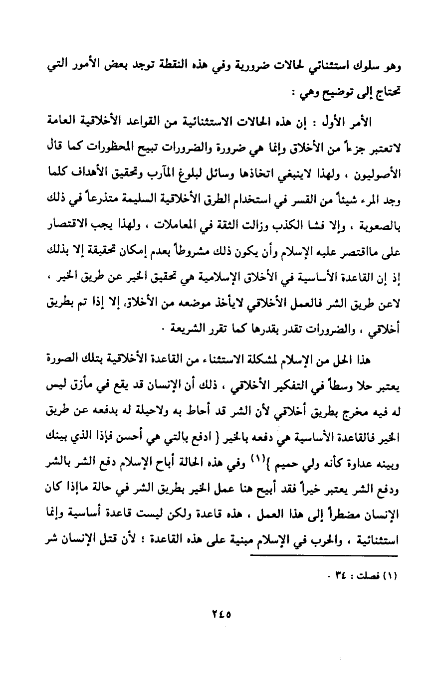 ومن أهم النقط التي عالجها الإسلام في هذا الموضوع بيانه درجات الإلزام بحسب اختلاف درجات القيم الأخلاقية فما كان أكثر أهمية ينبغي الالتزام به أكثر وأشد، وقد جاء ذلك في الإسلام مفصلاً ومحدداً وموضحاً.