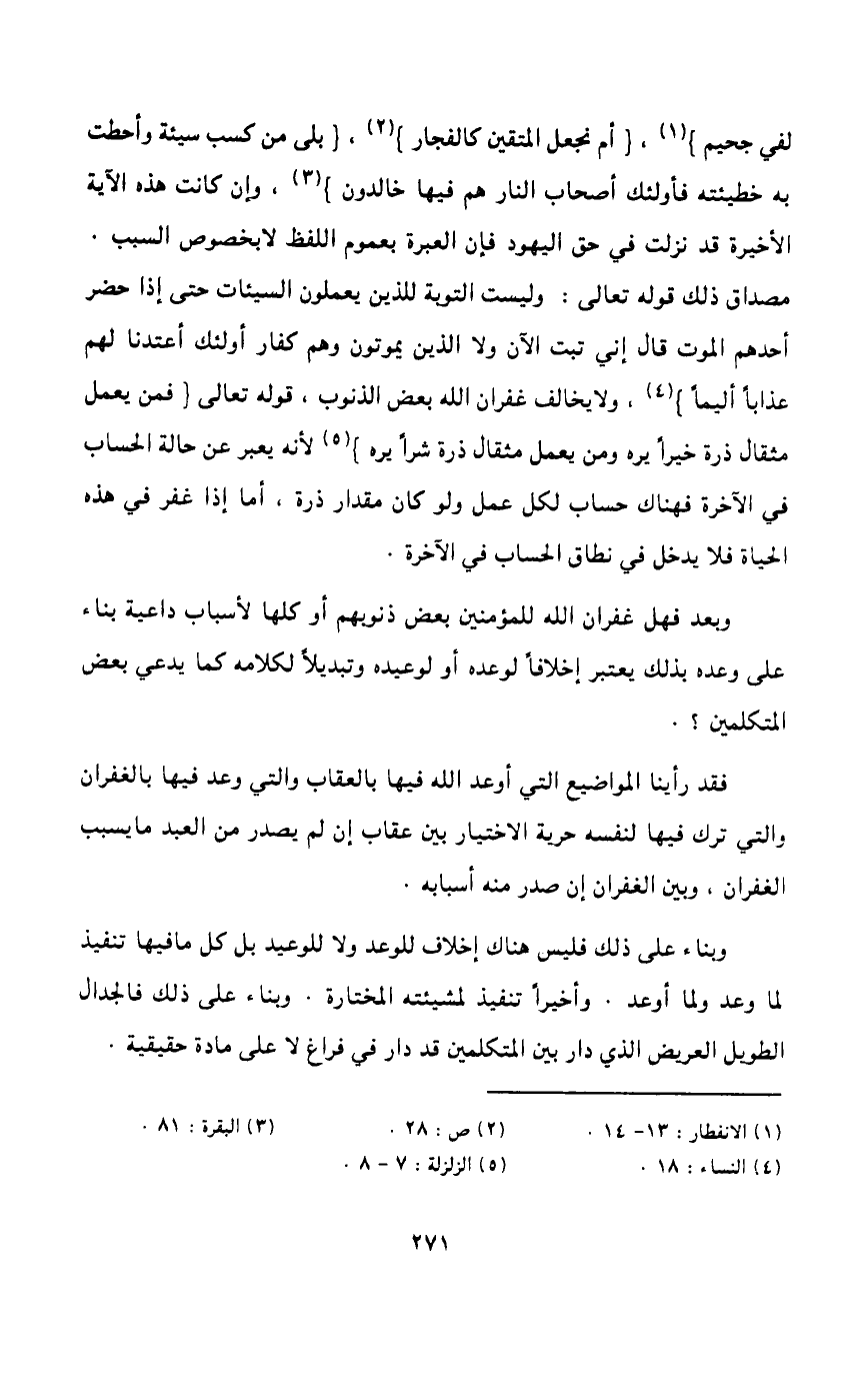 لكن لا يحق لنا القول بأن للنار نهاية وليست للجنة نهاية؛ لأننا إذا قلنا: إن المراد من الاستثناء هنا معناه الحقيقي فإنه قد ورد في كلا الطرفين، كما أن معنى التأبيد قد ورد كذلك في كلا الطرفين أو الحياتين مثل قوله تعالى في حق أهل النار: {فَإِنَّ لَهُ نَارَ جَهَنَّمَ خَالِدِينَ فِيهَا أَبَداً} 1، {إِنَّ الَّذِينَ كَفَرُوا وَظَلَمُوا لَمْ يَكُنِ اللَّهُ لِيَغْفِرَ لَهُمْ وَلا لِيَهْدِيَهُمْ طَرِيقاً, إِلاَّ طَرِيقَ جَهَنَّمَ خَالِدِينَ فِيهَا أَبَداً} 2، وقال تعالى في حياة أهل الجنة: {خَالِدِينَ فِيهَا أَبَداً لَهُمْ فِيهَا أَزْوَاجٌ مُطَهَّرَةٌ} 3، {خَالِدِينَ فِيهَا أَبَداً ذَلِكَ الْفَوْزُ الْعَظِيمُ} 4، ثم إن كلمة التأبيد لا تدل دائماً على اللا نهاية في الزمن بلا تدل أحياناً على نهاية زمن ما والدليل على ذلك قوله تعالى: {قَالَ مَا أَظُنُّ أَنْ تَبِيدَ هَذِهِ أَبَداً} 5، {إِنَّهُمْ إِنْ يَظْهَرُوا عَلَيْكُمْ يَرْجُمُوكُمْ أَوْ يُعِيدُوكُمْ فِي مِلَّتِهِمْ وَلَنْ تُفْلِحُوا إِذاً أَبَداً} 6، فإنها تدل هنا على عدم وجود الهداية إلى نهاية حياتهم الدنيا، إذن لا يحق لهؤلاء أن يجعلوا للنار أو لأهلها نهاية دون الجنة وأهلها، فذلك ترجيح بلا مرجح.
