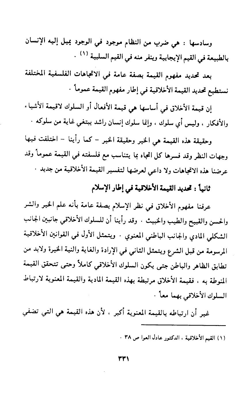 يتبين لنا من هذا العرض لاستعمالات كلمة الخير والقيمة أن الأولى تستعمل لجميع الخصال الحميدة والأفعال الأخلاقية النبيلة وما تؤدي إليه هذه وتلك من المنافع والفوائد لصالح الفرد والجماعة في الدنيا والآخرة ويعبر بها بصفة عامة عن القيم السلوكية والشخصية والفكرية والمادية.