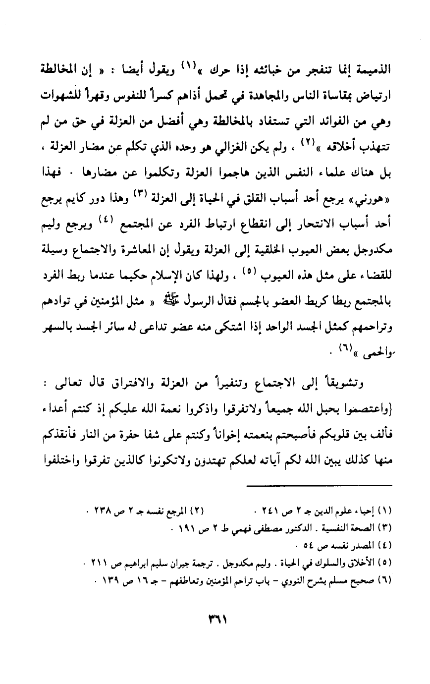 وكذلك قتال العابثين بأمن المجتمع ونظامه سواء كانت هذه الجماعة الخارجة من المسلمين أو غير المسلمين؛ ولهذا قال تعالى: {إِنَّمَا جَزَاءُ الَّذِينَ يُحَارِبُونَ اللَّهَ وَرَسُولَهُ وَيَسْعَوْنَ فِي الْأَرْضِ فَسَاداً أَنْ يُقَتَّلُوا أَوْ يُصَلَّبُوا أَوْ تُقَطَّعَ أَيْدِيهِمْ وَأَرْجُلُهُمْ مِنْ خِلافٍ أَوْ يُنْفَوْا مِنَ الْأَرْضِ ذَلِكَ لَهُمْ خِزْيٌ فِي الدُّنْيَا وَلَهُمْ فِي الْآخِرَةِ عَذَابٌ عَظِيمٌ} 1. ويصبح هذا الواجب عينيا في كلتا الحالتين إذا لم يتم إلا بمشاركة الجميع، ويدخل في هذا القسم كل تعاون جماعي في سبيل الخير إذا كان عمله يحتاج إلى هذا التعاون {وَتَعَاوَنُوا عَلَى الْبِرِّ وَالتَّقْوَى وَلا تَعَاوَنُوا عَلَى الْأِثْمِ وَالْعُدْوَانِ} .