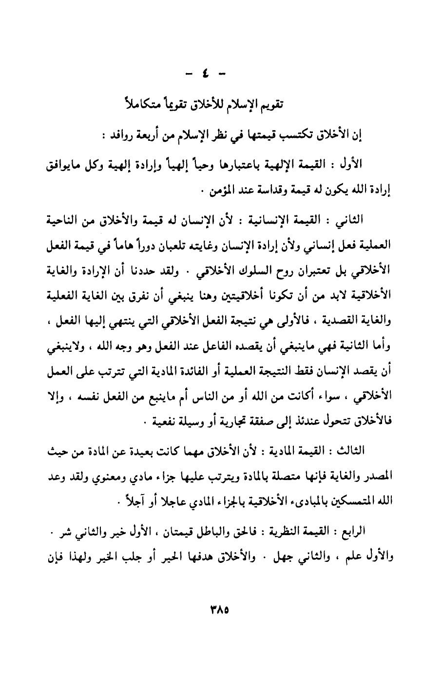 وتنهى عن الغدر والمحاباة والمفاجأة بالعدوان والتسلط والتجبر وما إلى ذلك من الصفات القبيحة، وفي ميدان الاقتصاد تدعو إلى العمل الجاد والإتقان والإبداع والابتكار من ناحية، ثم التقشف والقناعة وعدم التبذير والإسراف من ناحية أخرى.