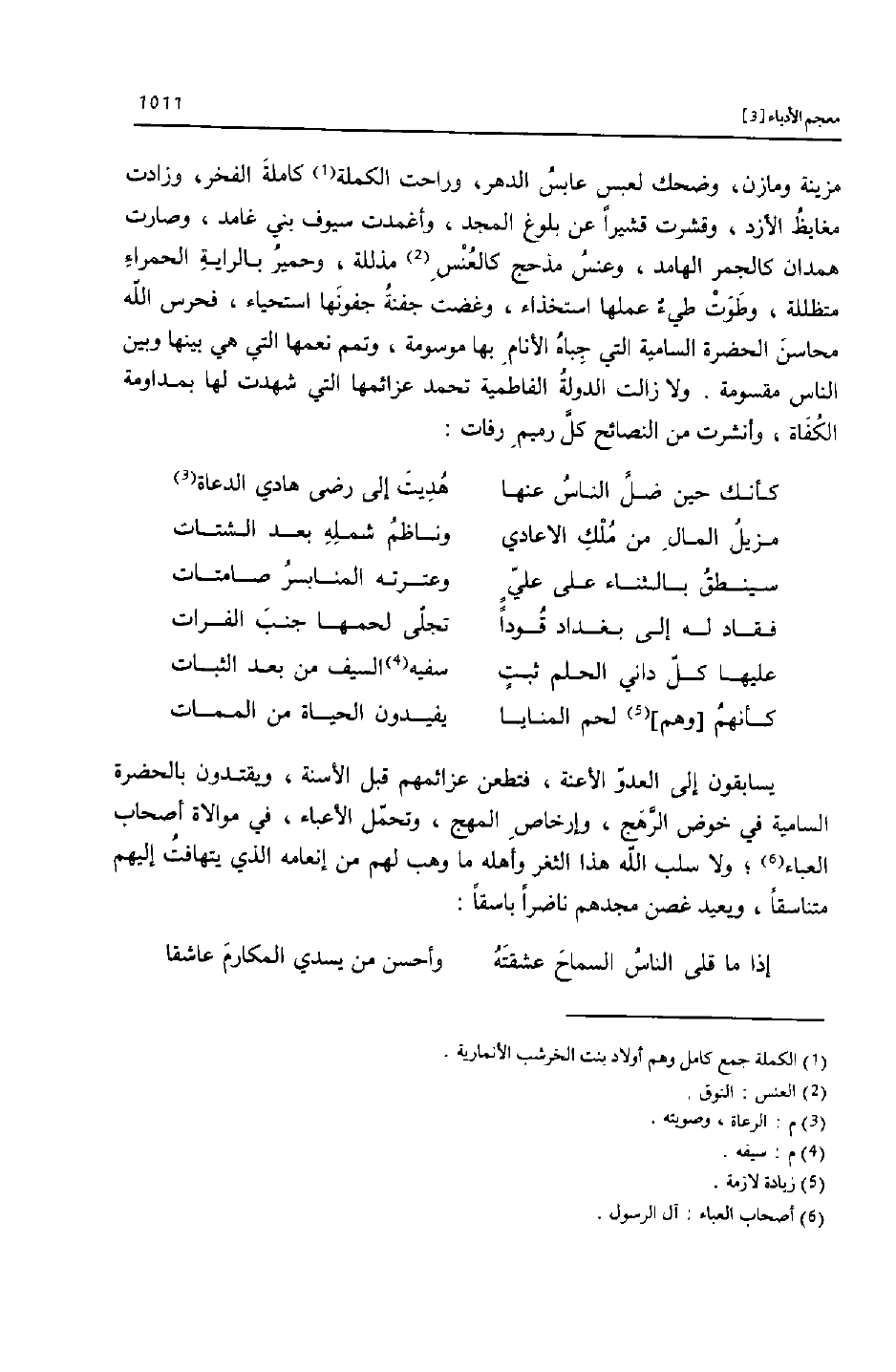 [1] الكملة جمع كامل وهم أولاد بنت الخرشب الأنمارية.