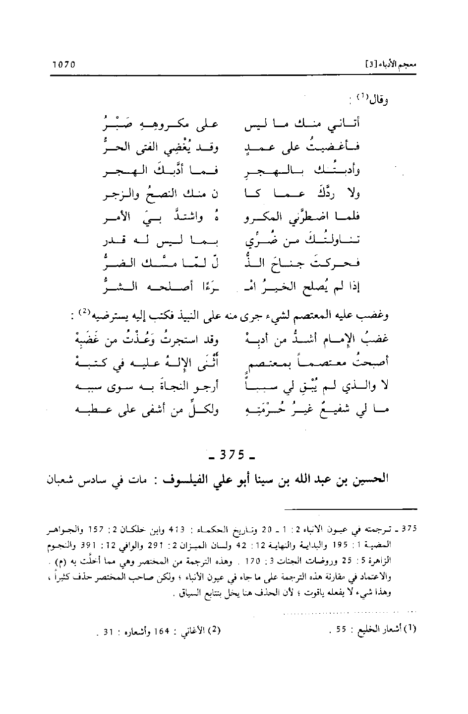 [375]- ترجمته في عيون الانباء 2: 1- 20 وتاريخ الحكماء: 413 وابن خلكان 2: 157 والجواهر المضية 1: 195 والبداية والنهاية 12: 42 ولسان الميزان 2: 291 والوافي 12: 391 والنجوم الزاهرة 5: 25 وروضات الجنات 3: 170. وهذه الترجمة من المختصر وهي مما أخلّت به (م) .