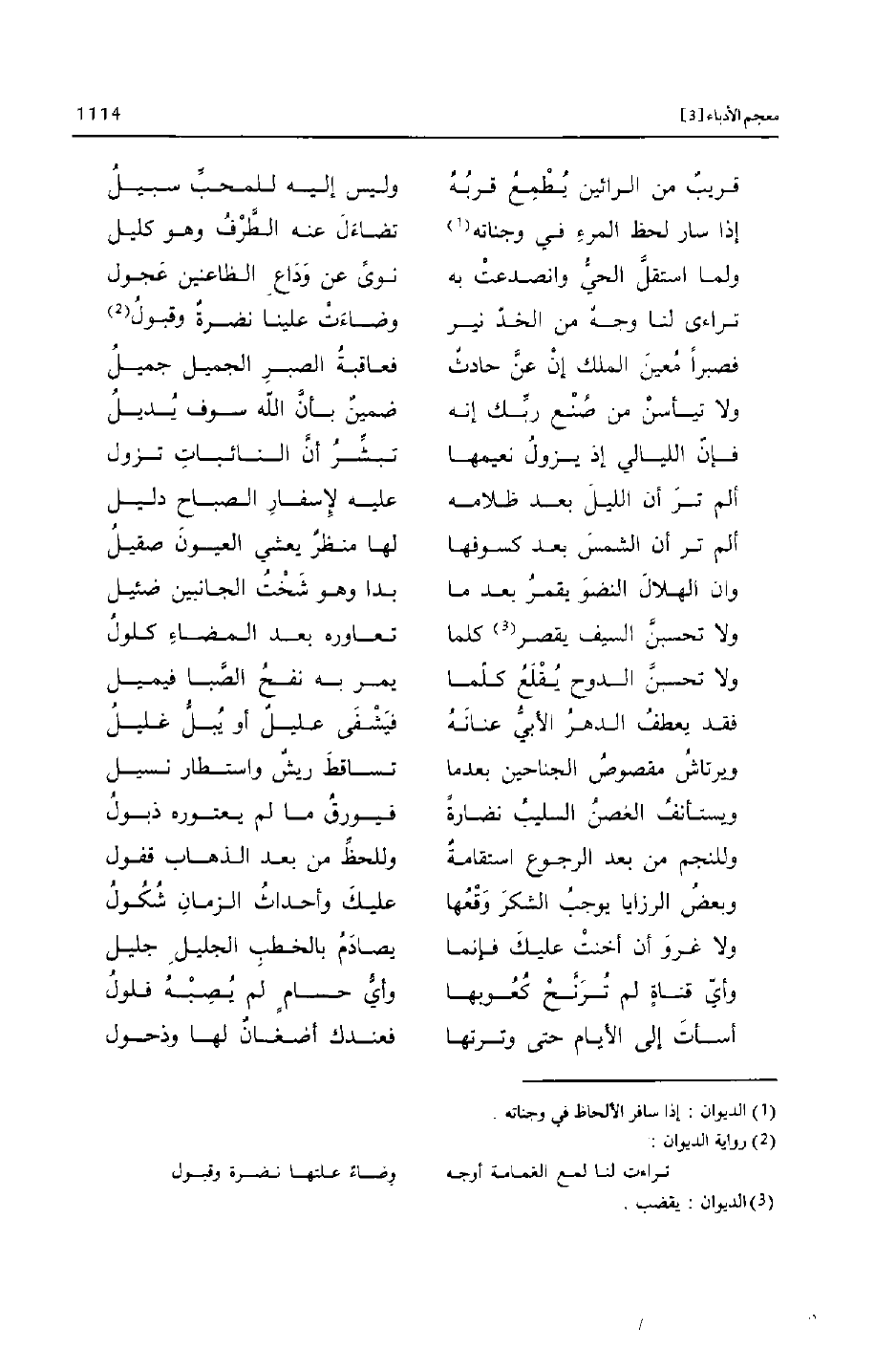 وللنجم من بعد الرجوع استقامة ... وللحظّ من بعد الذهاب قفول