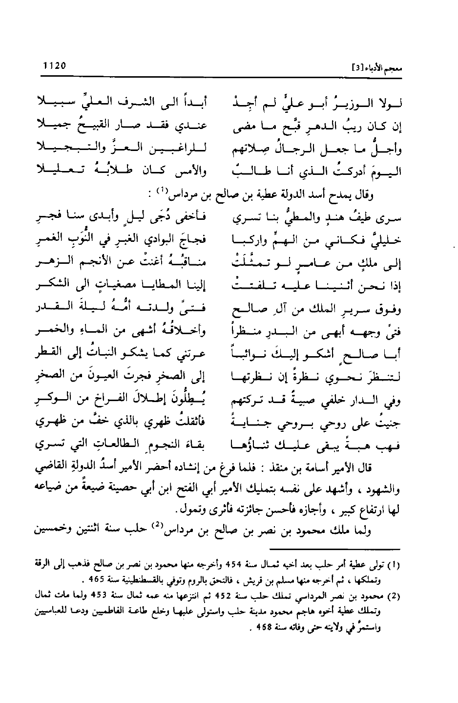 وقال يمدح أسد الدولة عطية بن صالح بن مرداس [1] :