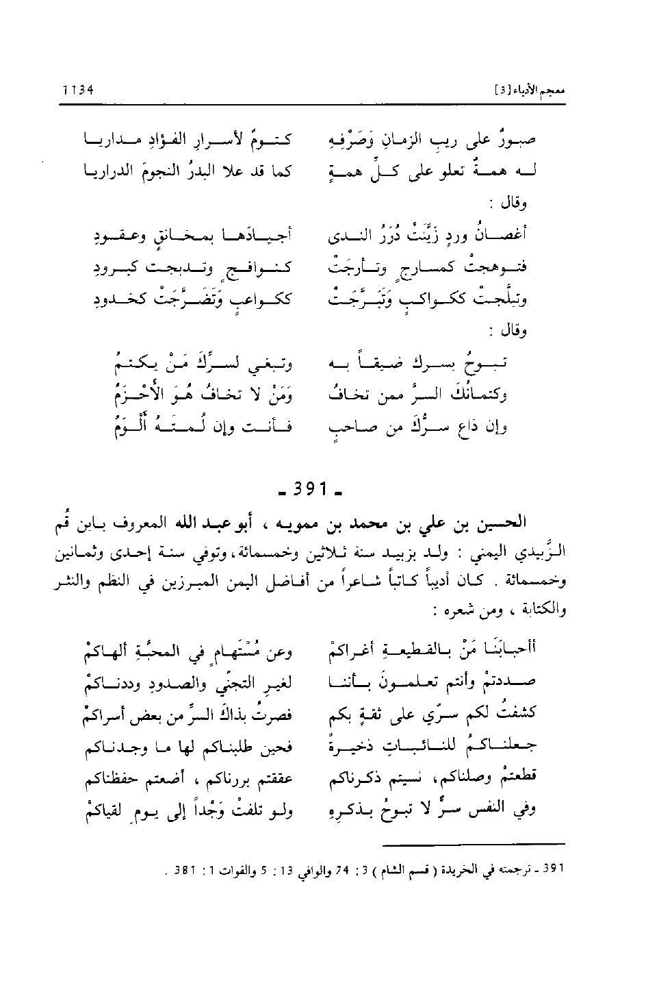 [391]- ترجمته في الخريدة (قسم الشام) 3: 74 والوافي 13: 5 والفوات 1: 381.