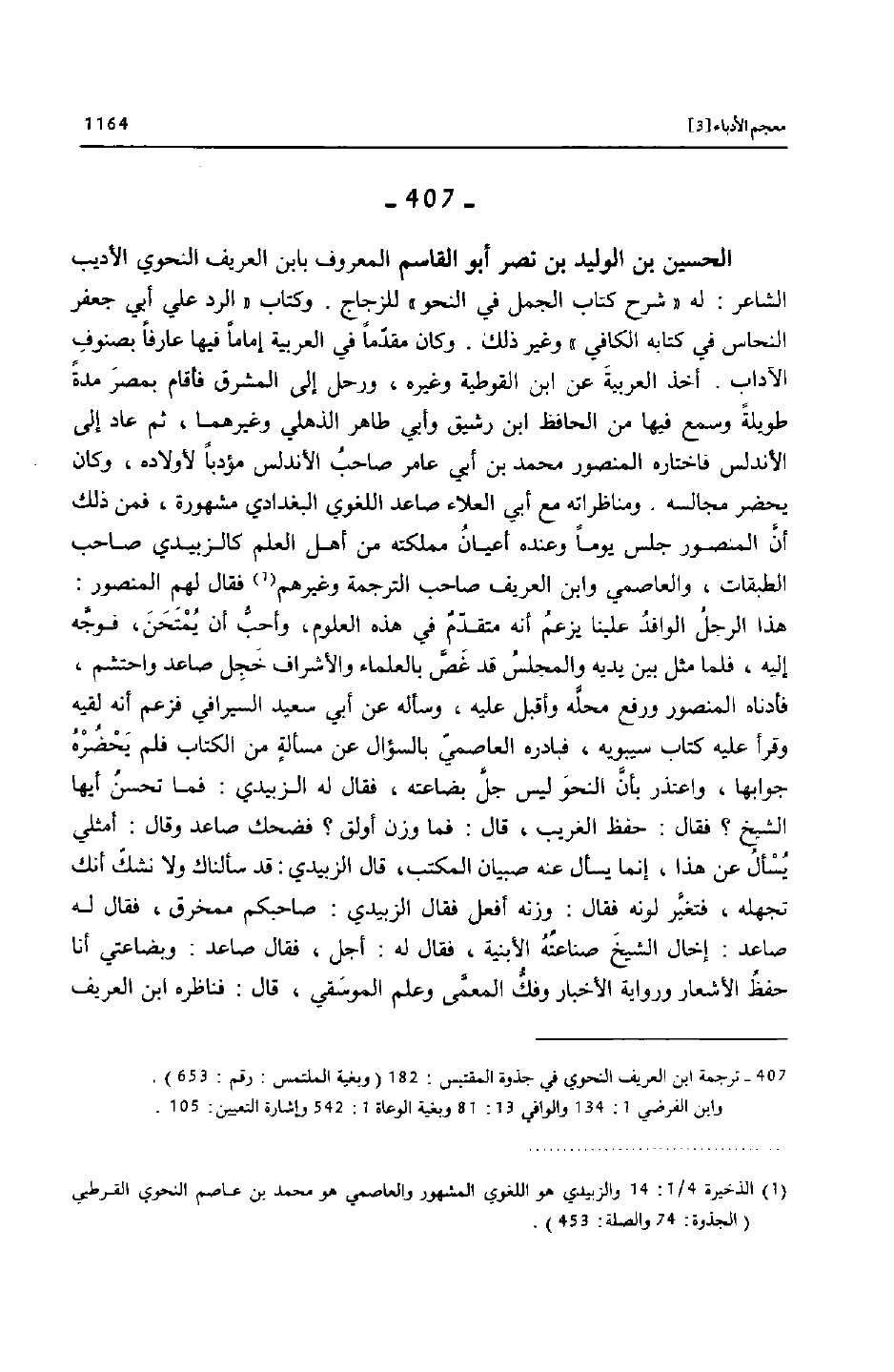 [1] الذخيرة 4/1: 14 والزبيدي هو اللغوي المشهور والعاصمي هو محمد بن عاصم النحوي القرطبي (الجذوة: 74 والصلة: 453) .