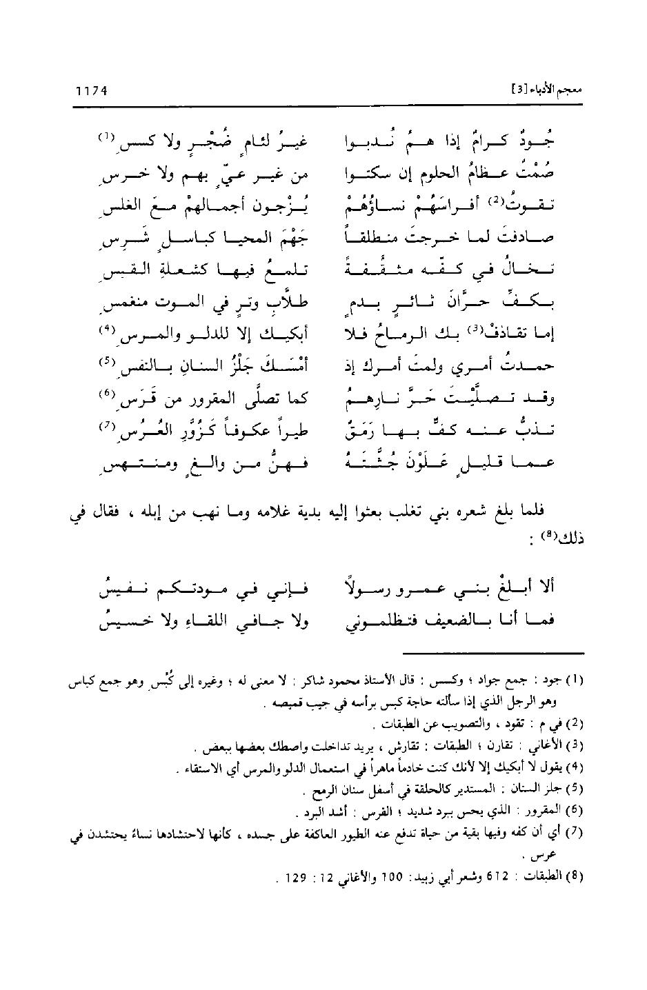 [8] الطبقات: 612 وشعر أبي زبيد: 100 والأغاني 12: 129.