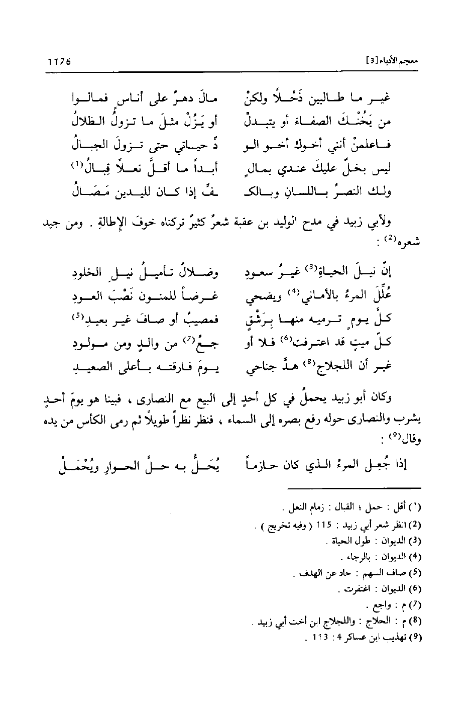 ولأبي زبيد في مدح الوليد بن عقبة شعر كثير تركناه خوف الإطالة. ومن جيد شعره [2] :