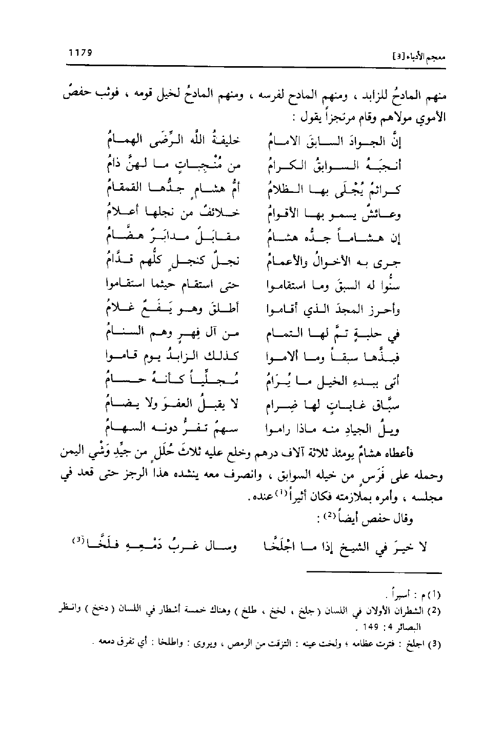 منهم المادح للزابد، ومنهم المادح لفرسه، ومنهم المادح لخيل قومه، فوثب حفص الأموي مولاهم وقام مرتجزا يقول:
