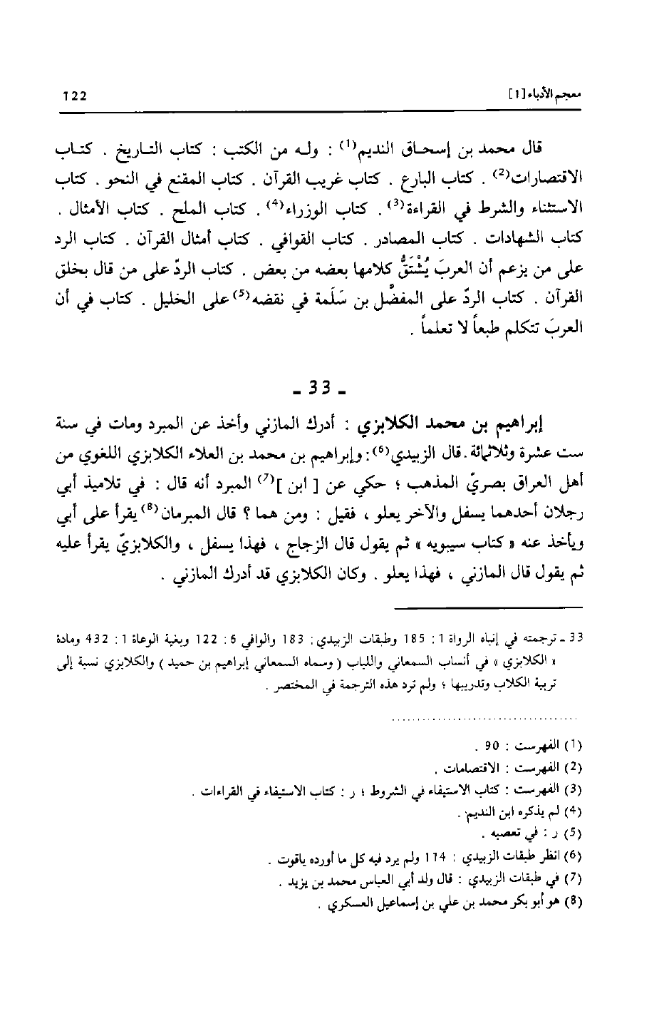 [33]- ترجمته في إنباه الرواة 1: 185 وطبقات الزبيدي: 183 والوافي 6: 122 وبغية الوعاة 1: 432 ومادة «الكلابزي» في أنساب السمعاني واللباب (وسماه السمعاني إبراهيم بن حميد) والكلابزي نسبة إلى تربية الكلاب وتدريبها؛ ولم ترد هذه الترجمة في المختصر.