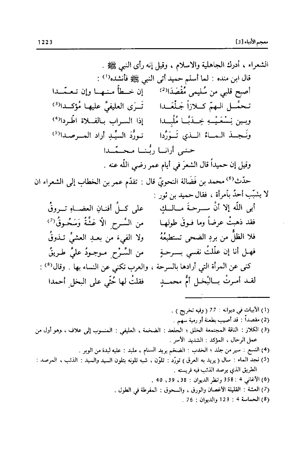 وقيل إن حميدا قال الشعر في أيام عمر رضي الله عنه.
