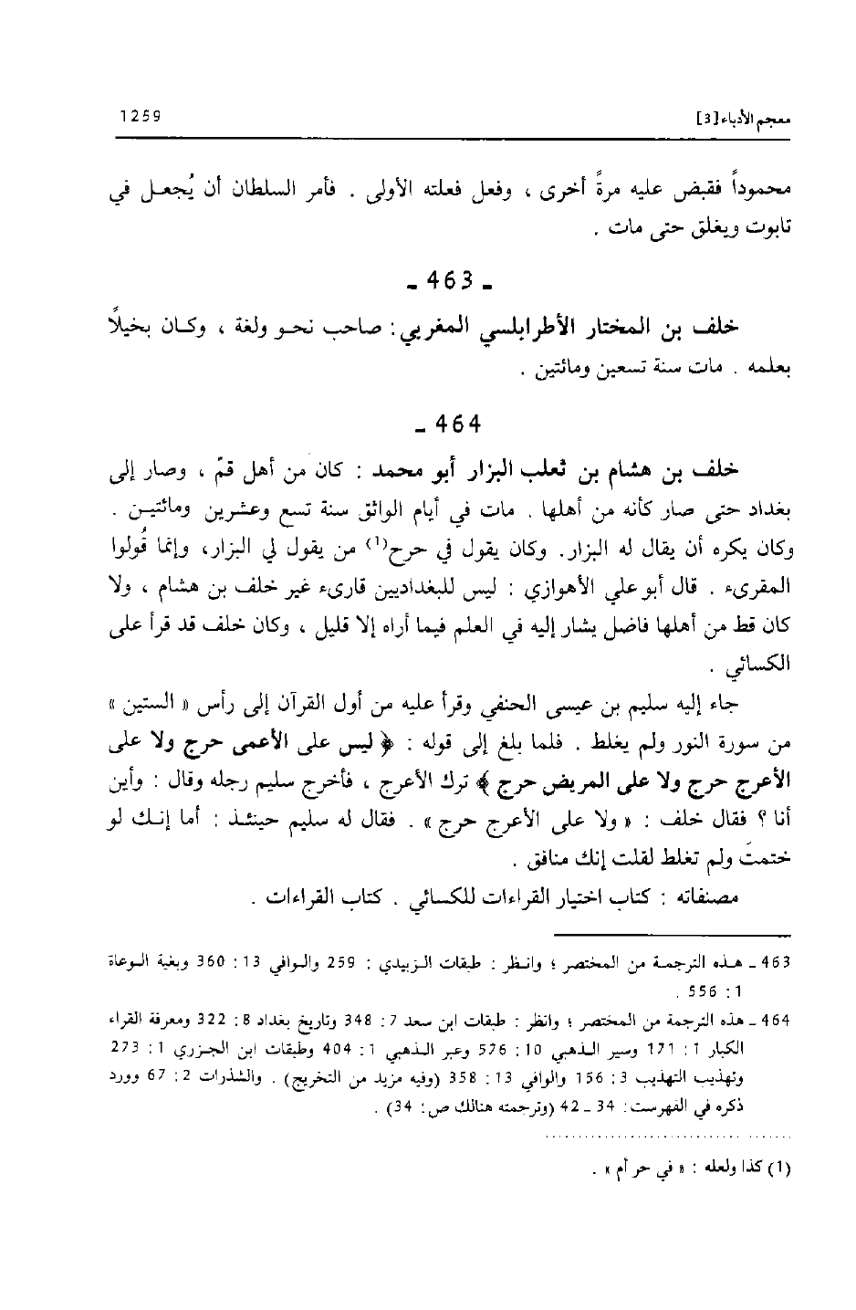 [464]- هذه الترجمة من المختصر؛ وانظر: طبقات ابن سعد 7: 348 وتاريخ بغداد 8: 322 ومعرفة القراء الكبار 1: 171 وسير الذهبي 10: 576 وعبر الذهبي 1: 404 وطبقات ابن الجزري 1: 273 وتهذيب التهذيب 3: 156 والوافي 13: 358 (وفيه مزيد من التخريج) . والشذرات 2: 67 وورد ذكره في الفهرست: 34- 42 (وترجمته هنالك ص: 34) .