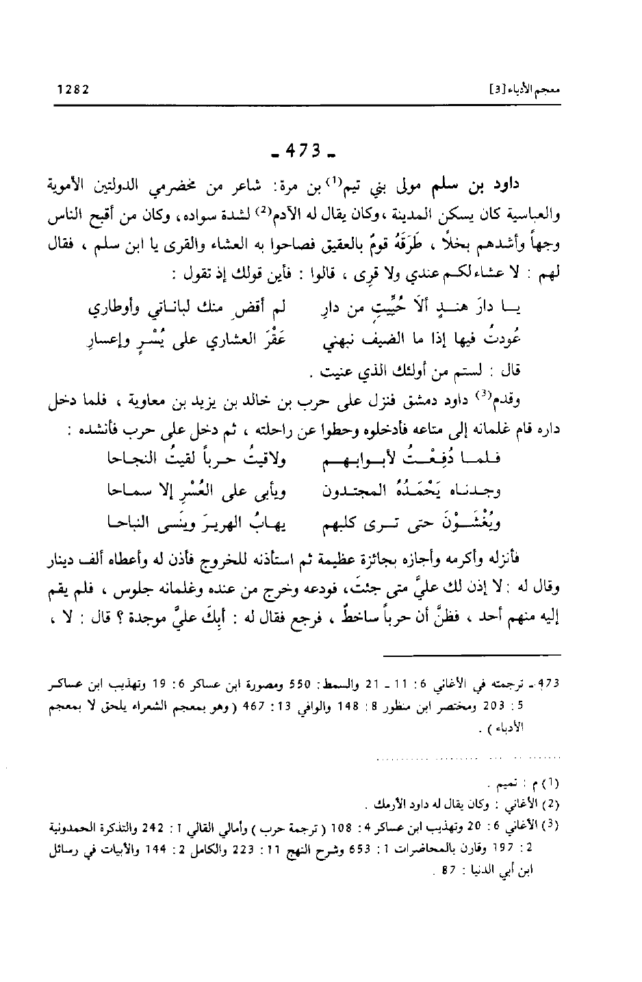 [473]- ترجمته في الأغاني 6: 11- 21 والسمط: 550 ومصورة ابن عساكر 6: 19 وتهذيب ابن عساكر 5: 203 ومختصر ابن منظور 8: 148 والوافي 13: 467 (وهو بمعجم الشعراء يلحق لا بمعجم الأدباء) .