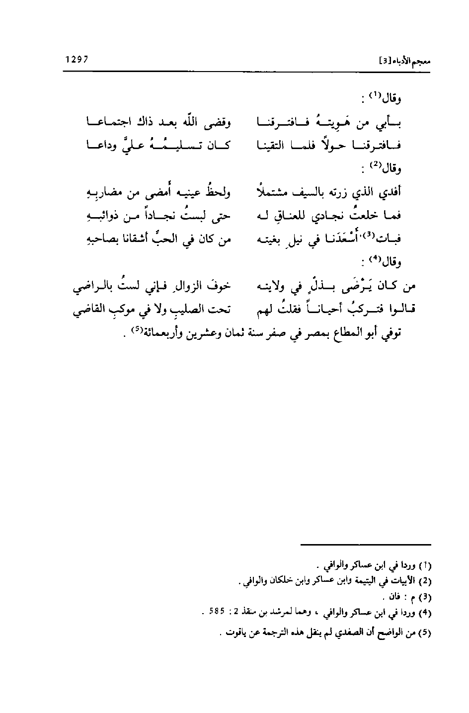 [5] من الواضح أن الصفدي لم ينقل هذه الترجمة عن ياقوت.