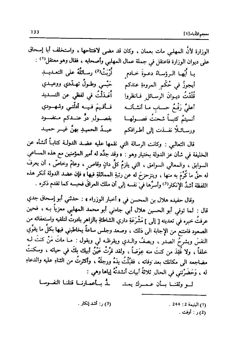 يا أيّها الرؤساء دعوة خادم ... أربت [2] رسائله على التعديد
