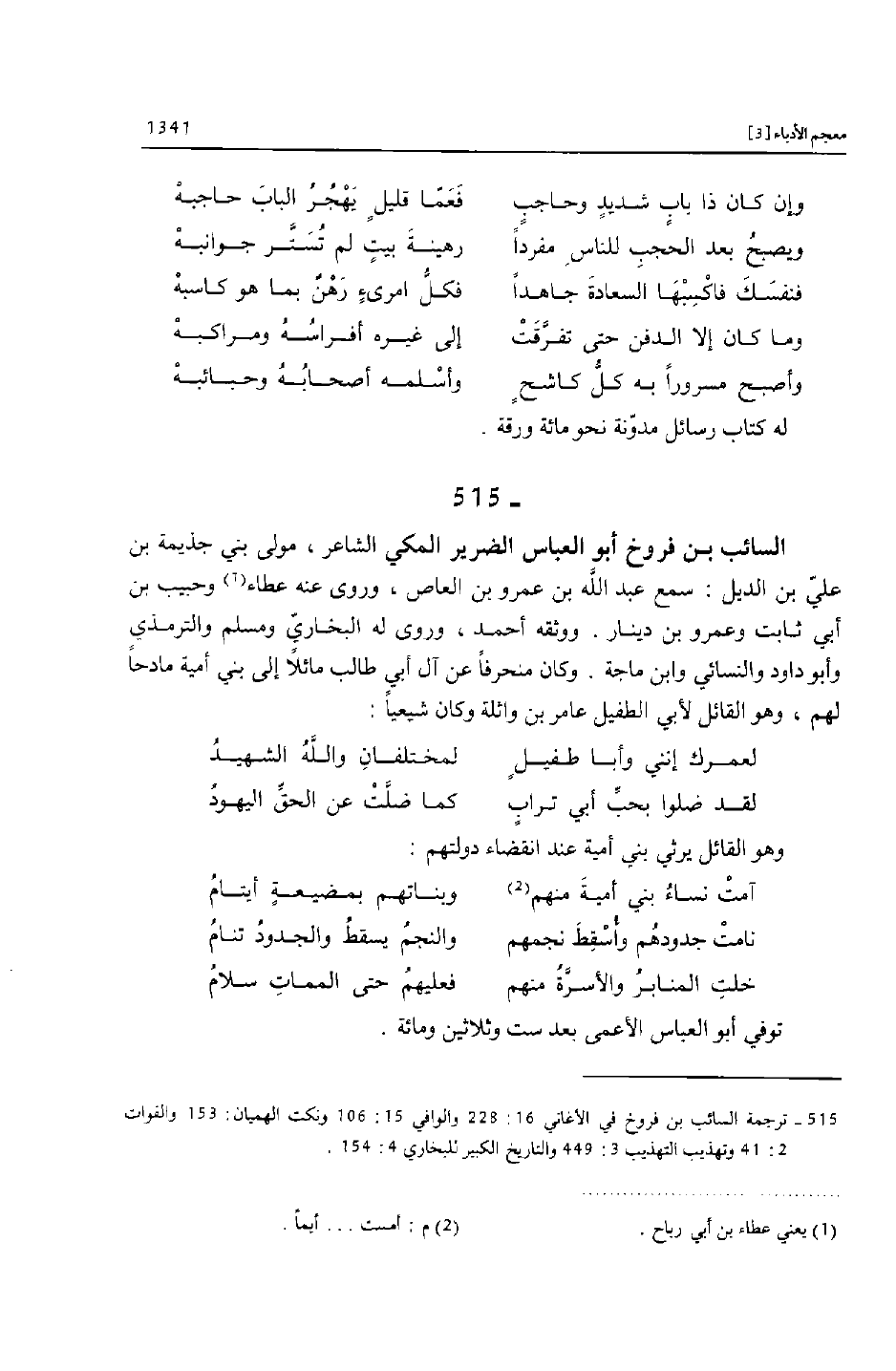 [515]- ترجمة السائب بن فروخ في الأغاني 16: 228 والوافي 15: 106 ونكت الهميان: 153 والفوات 2: 41 وتهذيب التهذيب 3: 449 والتاريخ الكبير للبخاري 4: 154.