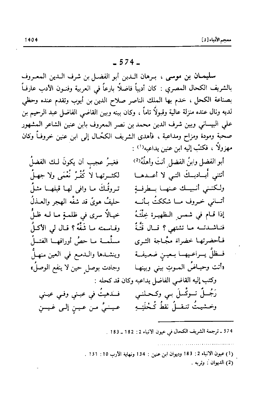 [574]- ترجمة الشريف الكحال في عيون الانباء 2: 182- 183.