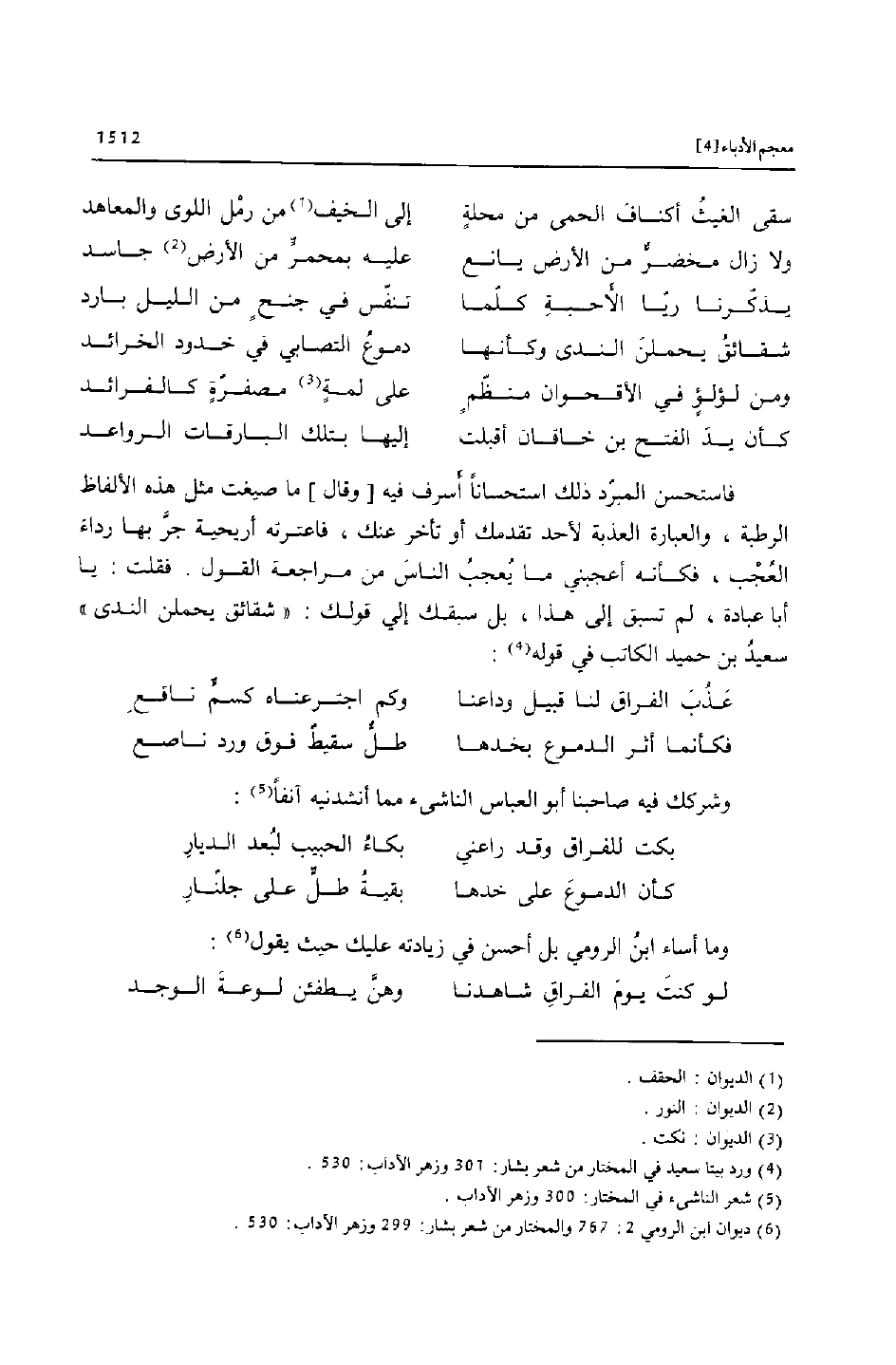 وما أساء ابن الرومي بل أحسن في زيادته عليك حيث يقول «6» :