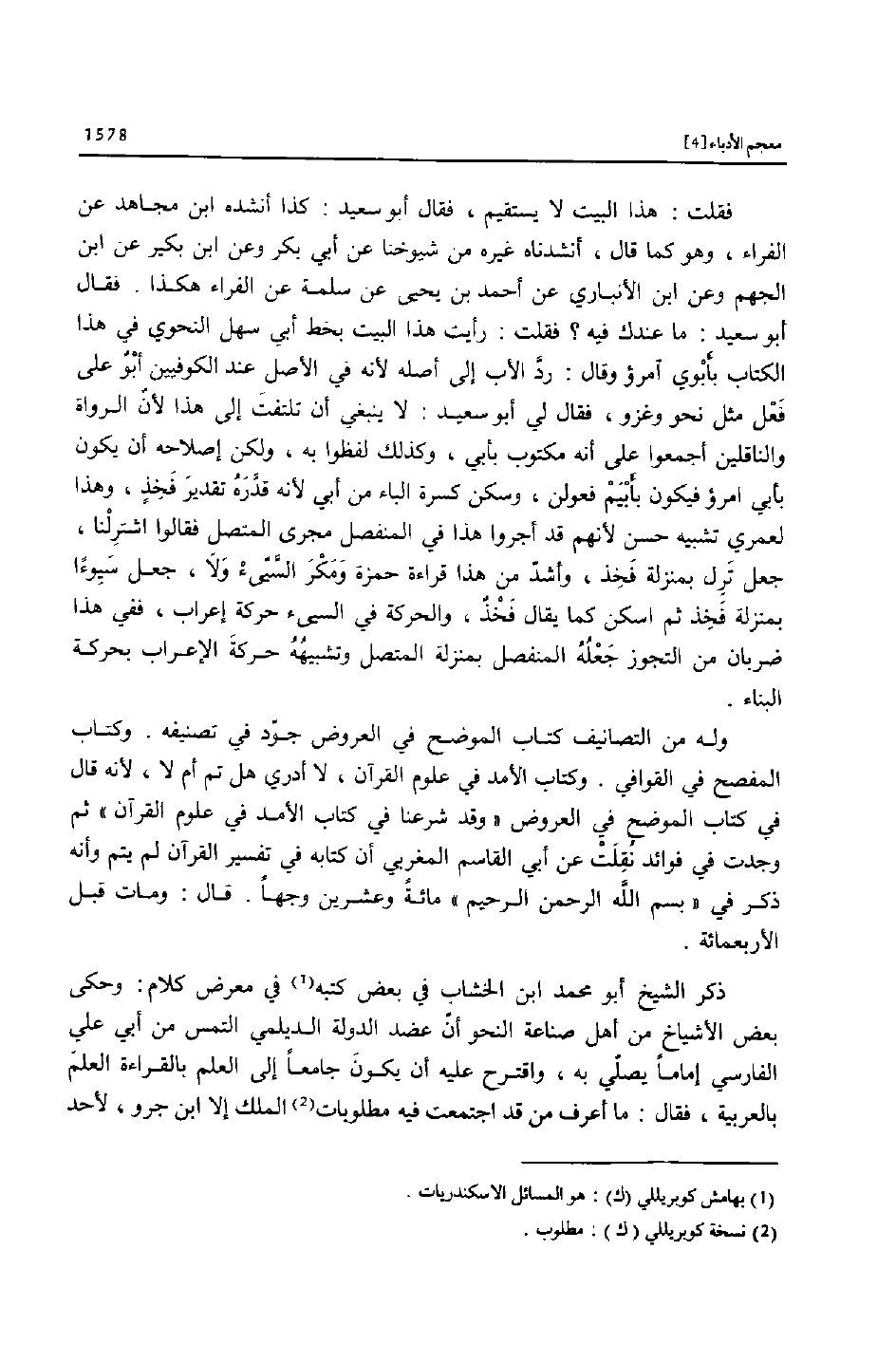 كتاب معجم الأدباء = إرشاد الأريب إلى معرفة الأديب (اسم الجزء: 4)