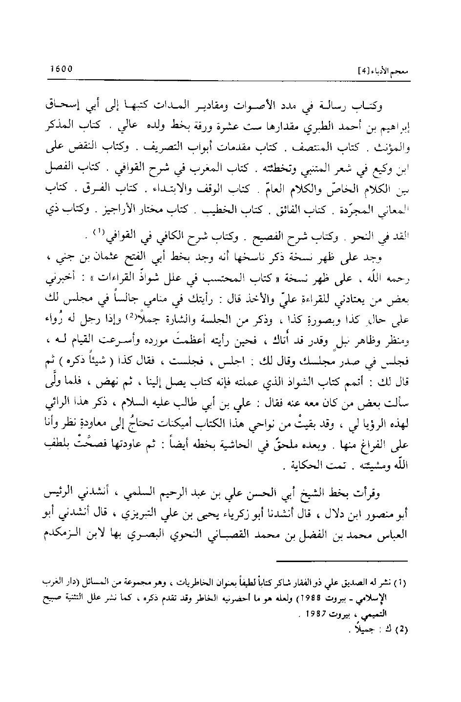 كتاب معجم الأدباء = إرشاد الأريب إلى معرفة الأديب (اسم الجزء: 4)
