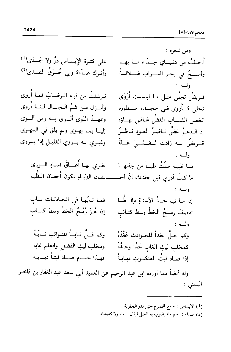 وله أيضا مما أورده ابن عبد الرحيم عن العميد أبي سعد عبد الغفار بن فاخر البستي: