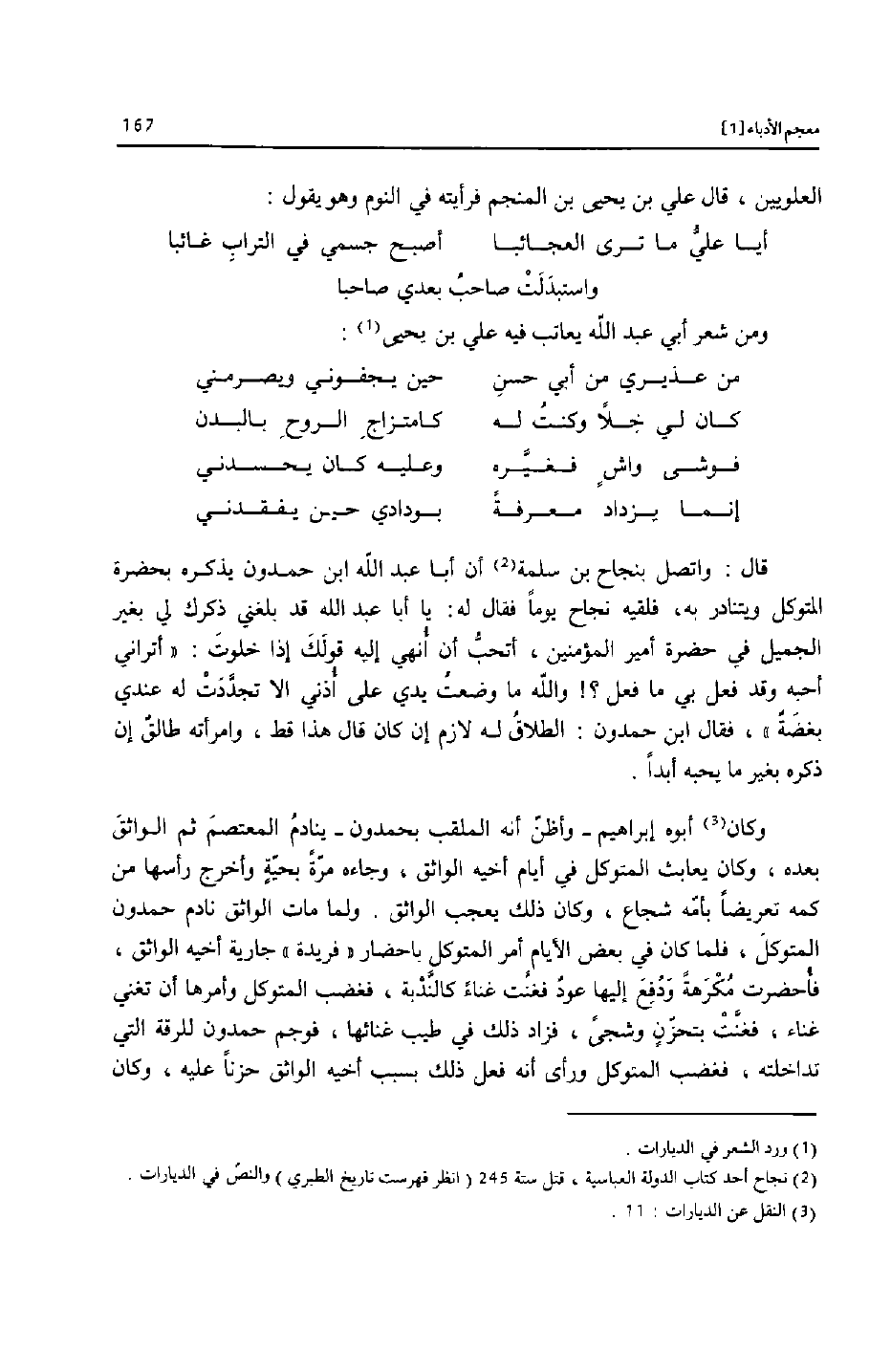العلويين، قال علي بن يحيى بن المنجم فرأيته في النوم وهو يقول: