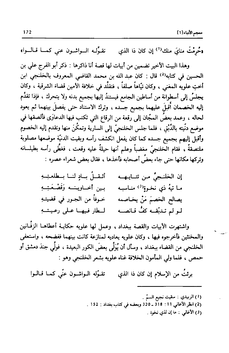 [2] انظر الأغاني 11: 318- 320 وبعضه في كتاب بغداد: 152.
