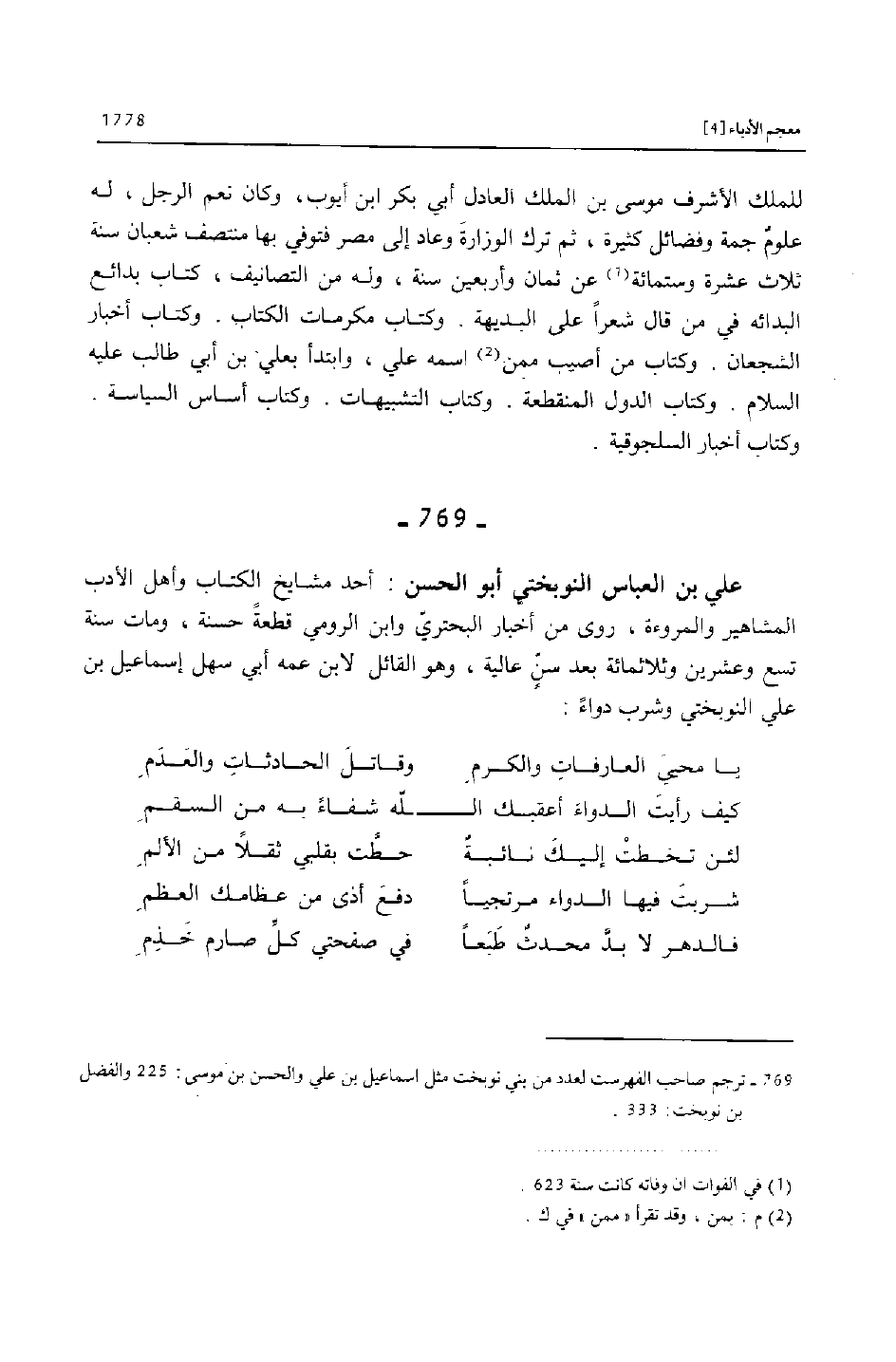 [769]- ترجم صاحب الفهرست لعدد من بني نوبخت مثل اسماعيل بن علي والحسن بن موسى: 225 والفضل بن نوبخت: 333.
