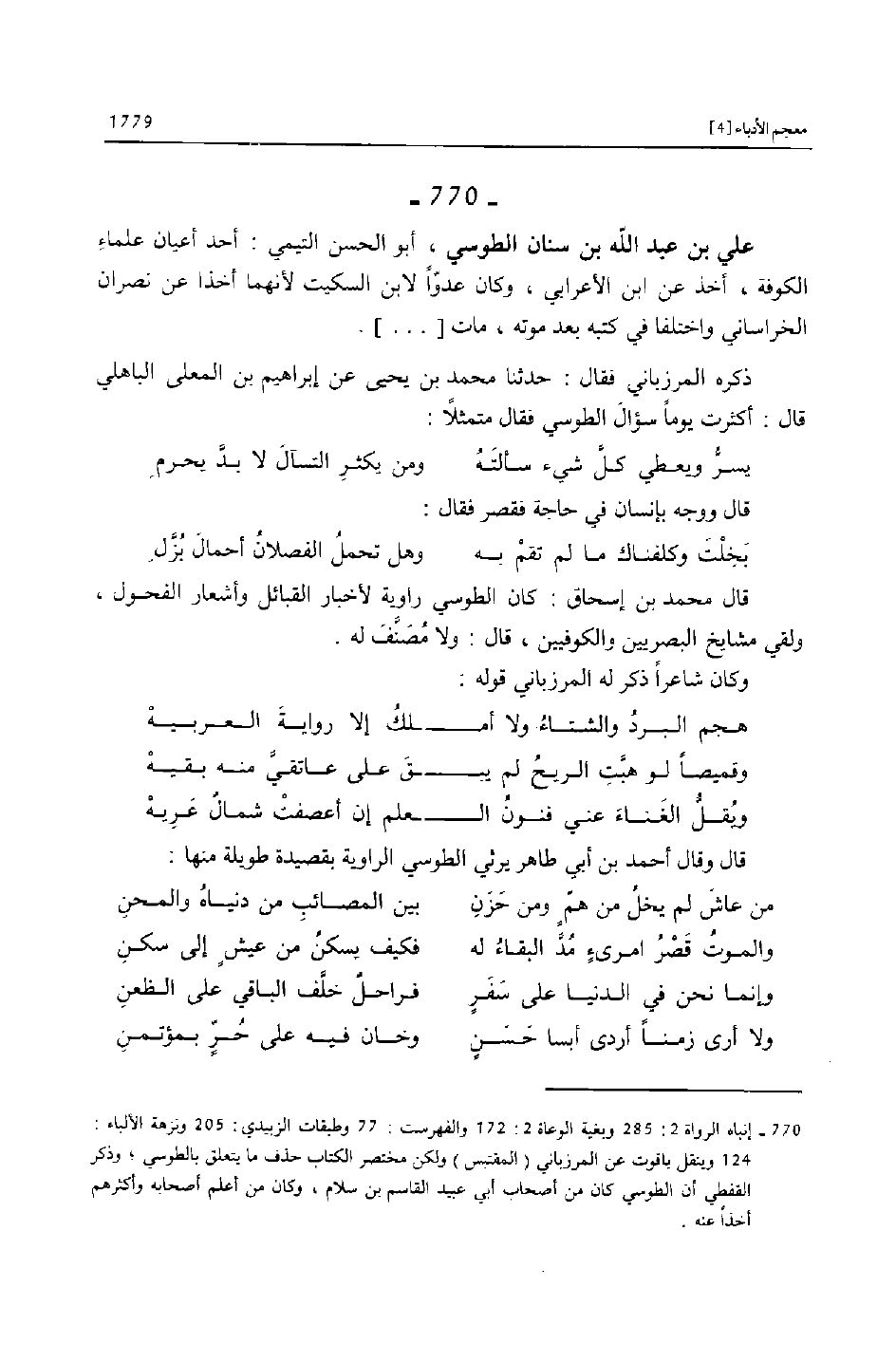 [770]- إنباه الرواة 2: 285 وبغية الوعاة 2: 172 والفهرست: 77 وطبقات الزبيدي: 205 ونزهة الألباء: