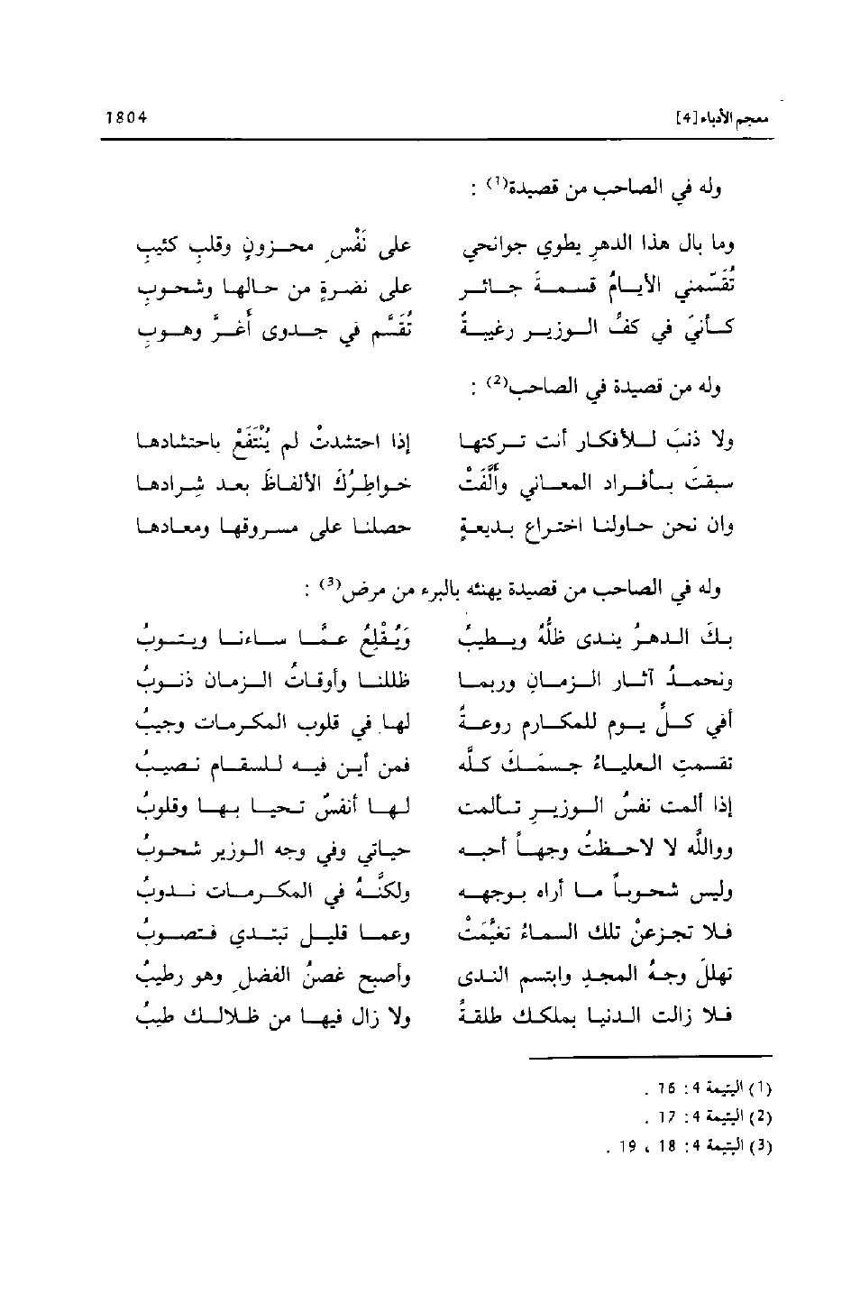 وله في الصاحب من قصيدة يهنئه بالبرء من مرض «3» :