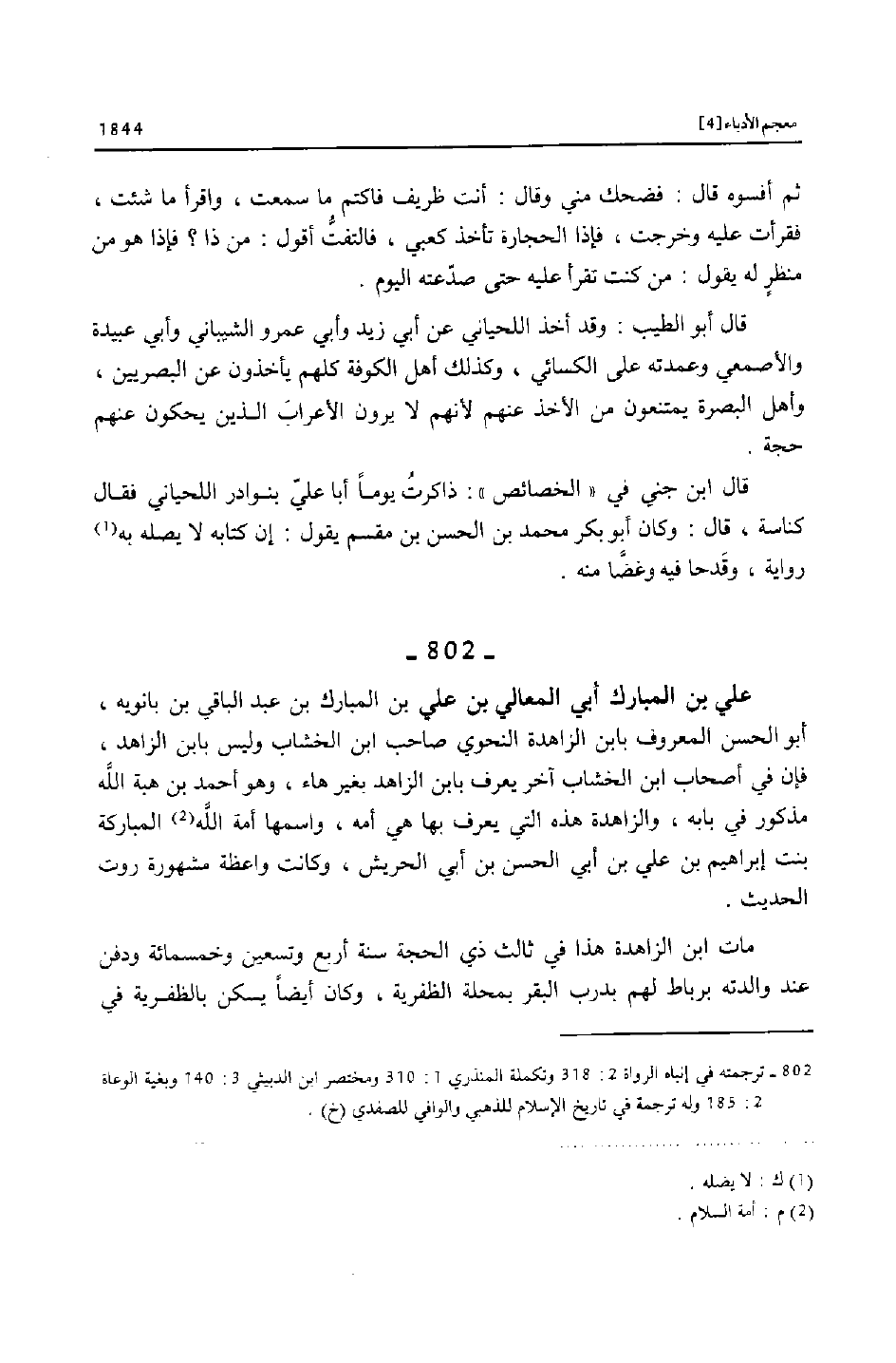 [802]- ترجمته في إنباه الرواة 2: 318 وتكملة المنذري 1: 310 ومختصر ابن الدبيثي 3: 140 وبغية الوعاة 2: 185 وله ترجمة في تاريخ الإسلام للذهبي والوافي للصفدي (خ) .