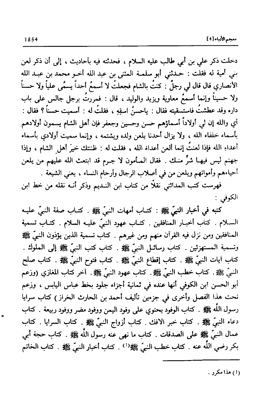 فهرست كتب المدائني نقلا من كتاب ابن النديم وذكر أنه نقله من خط ابن الكوفي: