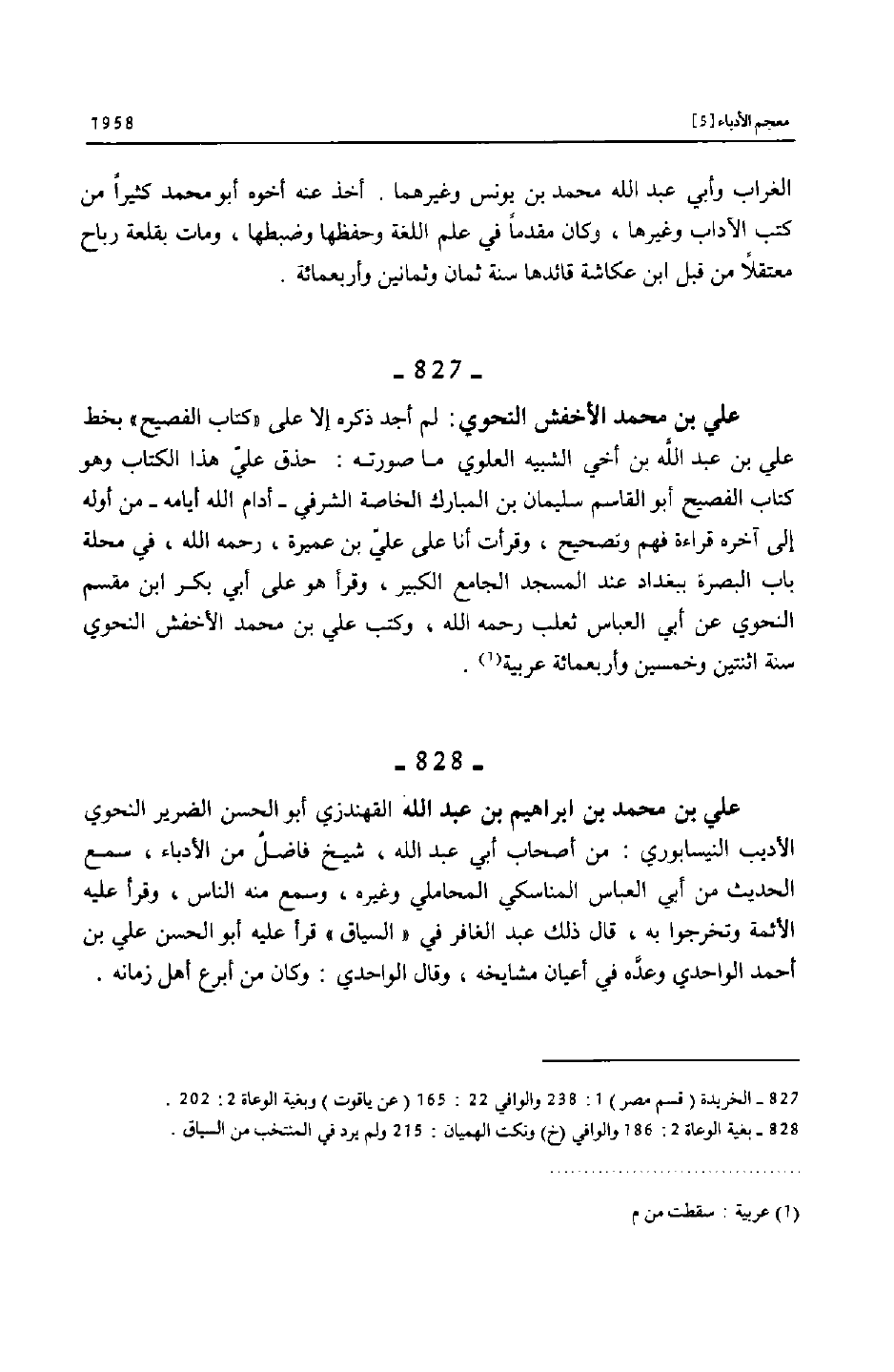 (827) - الخريدة (قسم مصر) 1: 238 والوافي 22: 165 (عن ياقوت) وبغية الوعاة 2: 202.