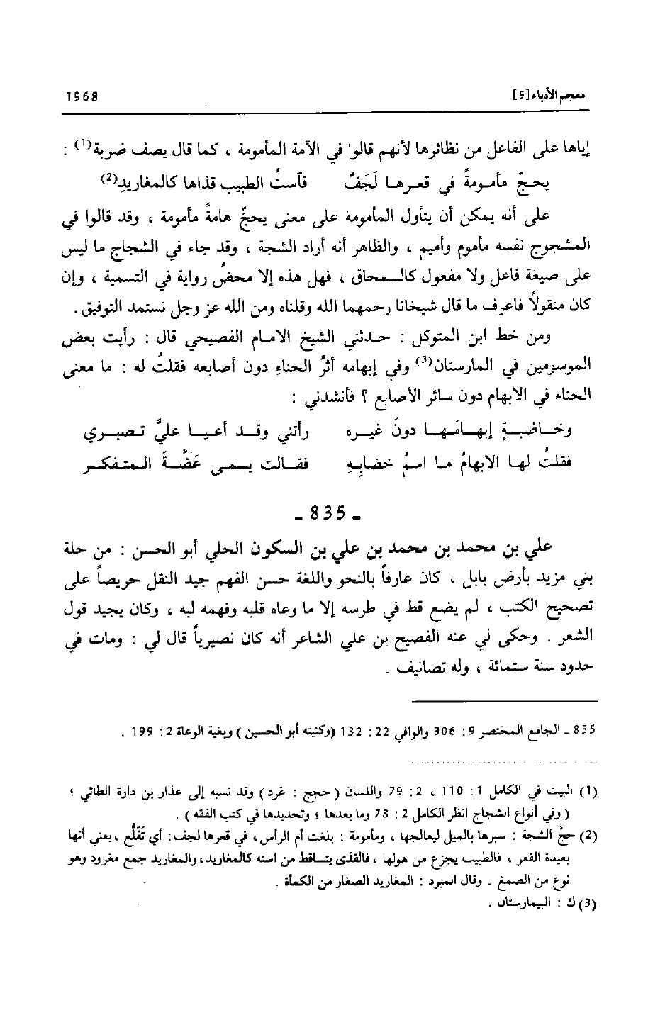 (835) - الجامع المختصر 9: 306 والوافي 22: 132 (وكنيته أبو الحسين) وبغية الوعاة 2: 199.