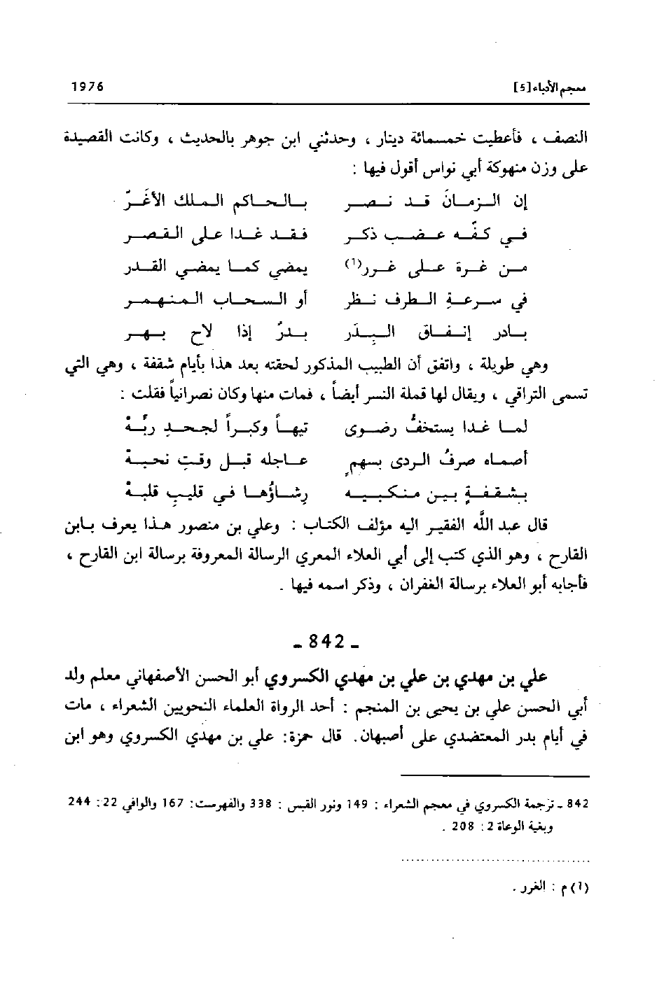 (842) - ترجمة الكسروي في معجم الشعراء: 149 ونور القبس: 338 والفهرست: 167 والوافي 22: 244 وبغية الوعاة 2: 208.