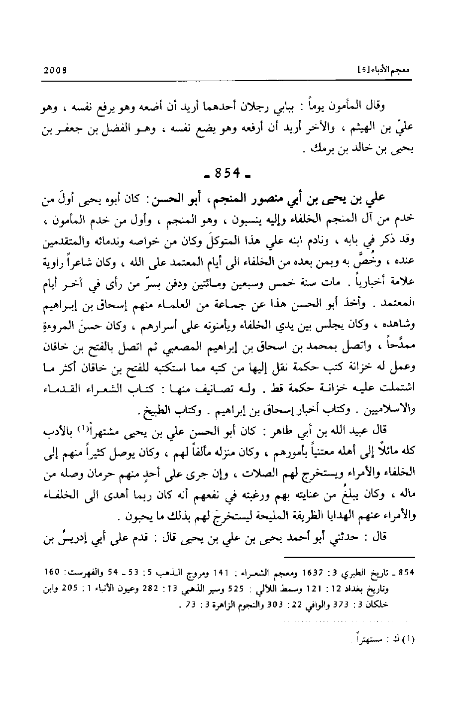 (854) - تاريخ الطبري 3: 1637 ومعجم الشعراء: 141 ومروج الذهب 5: 53- 54 والفهرست: 160 وتاريخ بغداد 12: 121 وسمط اللآلي: 525 وسير الذهبي 13: 282 وعيون الأنباء 1: 205 وابن خلكان 3: 373 والوافي 22: 303 والنجوم الزاهرة 3: 73.