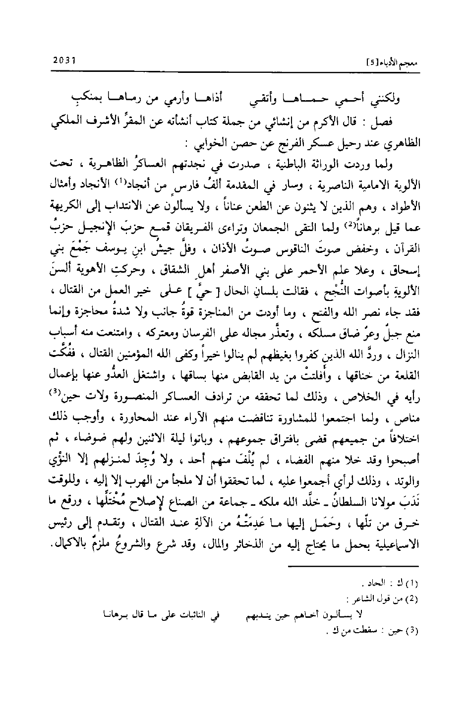 فصل: قال الأكرم من إنشائي من جملة كتاب أنشأته عن المقرّ الأشرف الملكي الظاهري عند رحيل عسكر الفرنج عن حصن الخوابي:
