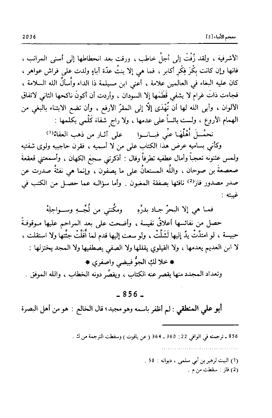 (856) - ترجمته في الوافي 22: 360- 364 (عن ياقوت) وسقطت الترجمة من ك.