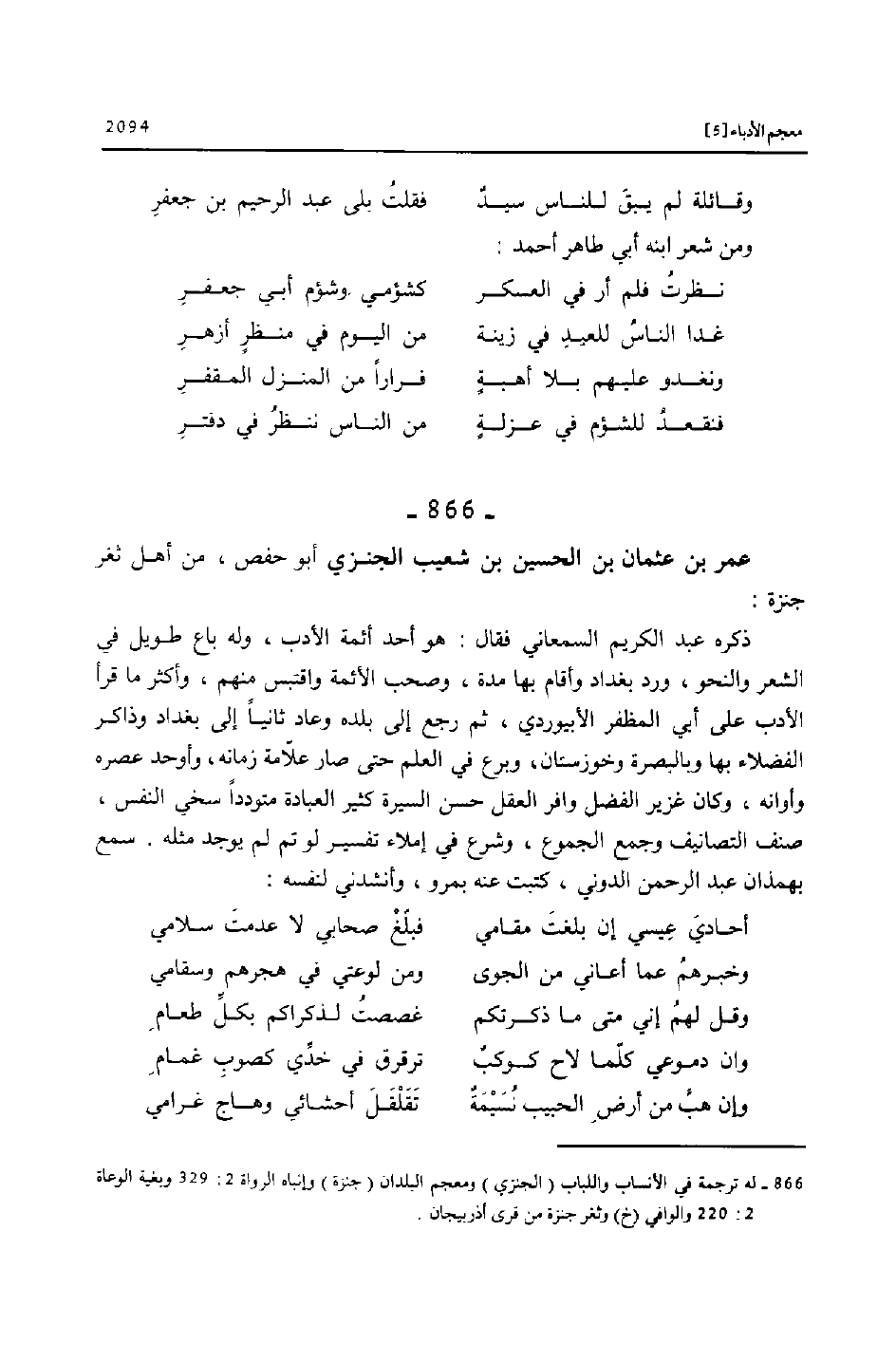 (866) - له ترجمة في الأنساب واللباب (الجنزي) ومعجم البلدان (جنزة) وإنباه الرواة 2: 329 وبغية الوعاة 2: 220 والوافي (خ) وثغر جنزة من قرى أذربيجان.