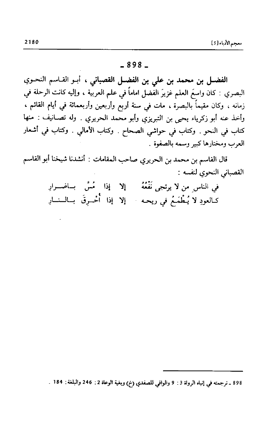 (898) - ترجمته في إنباه الرواة 3: 9 والوافي للصفدي (خ) وبغية الوعاة 2: 246 والبلغة: 184.