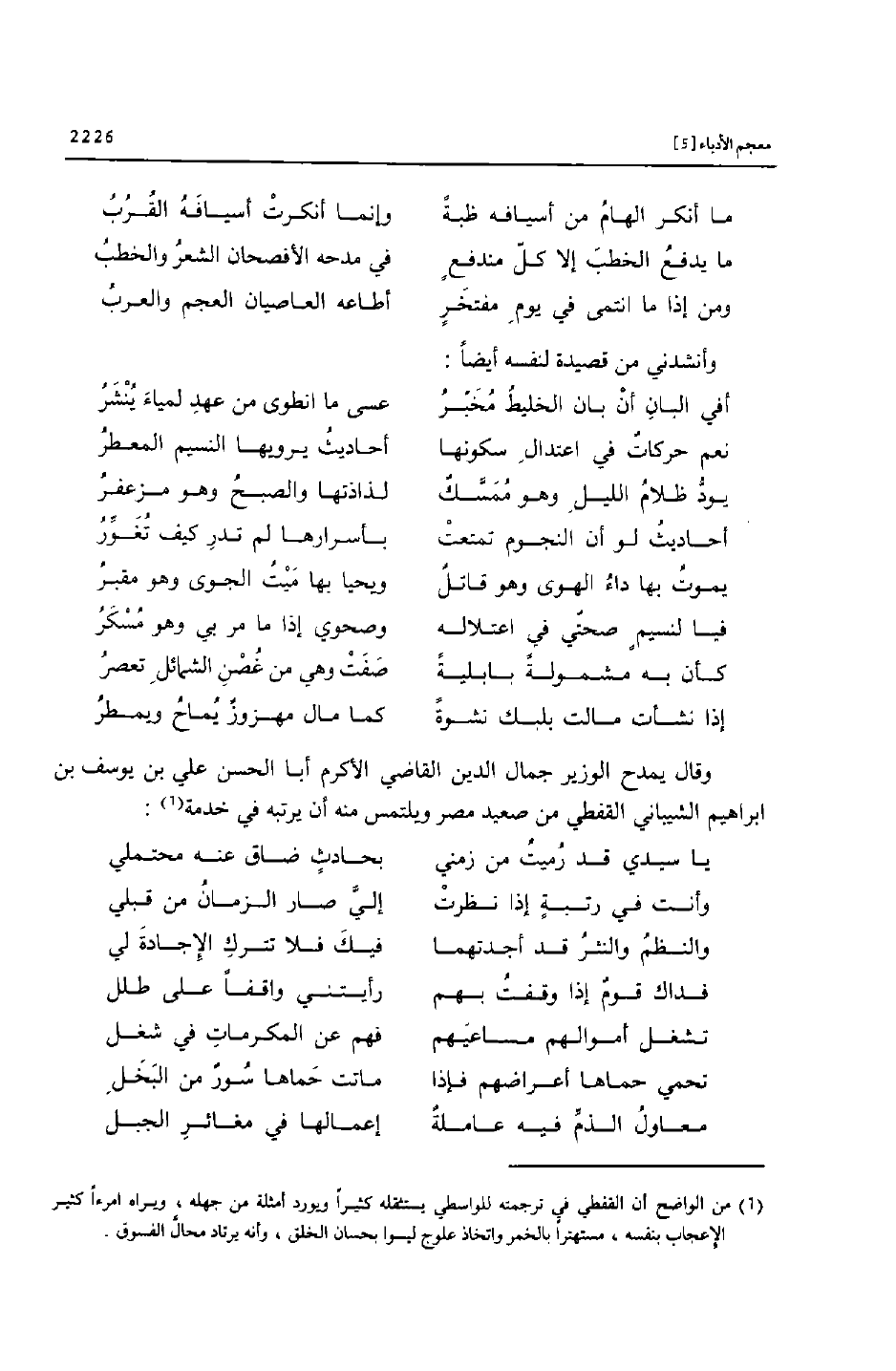 وقال يمدح الوزير جمال الدين القاضي الأكرم أبا الحسن علي بن يوسف بن ابراهيم الشيباني القفطي من صعيد مصر ويلتمس منه أن يرتبه في خدمة «1» :