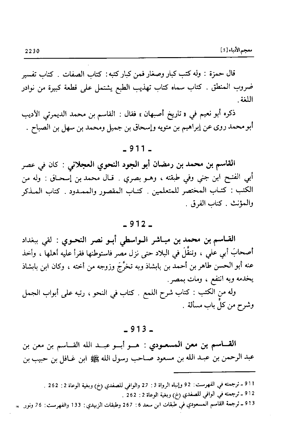 (911) - ترجمته في الفهرست: 92 وإنباه الرواة 3: 27 والوافي للصفدي (خ) وبغية الوعاة 2: 262.