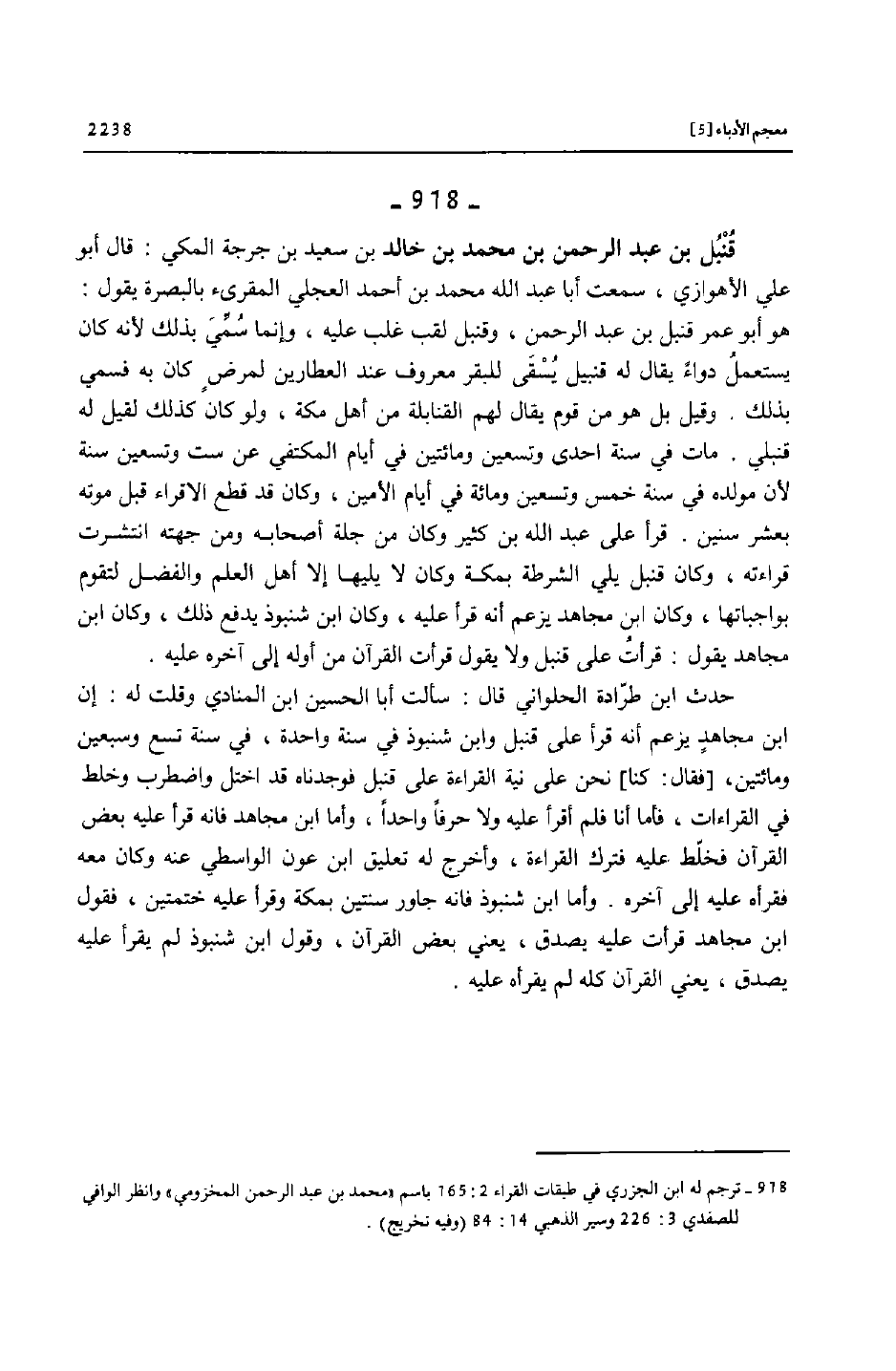 (918) - ترجم له ابن الجزري في طبقات القراء 2: 165 باسم «محمد بن عبد الرحمن المخزومي» وانظر الوافي للصفدي 3: 226 وسير الذهبي 14: 84 (وفيه تخريج) .