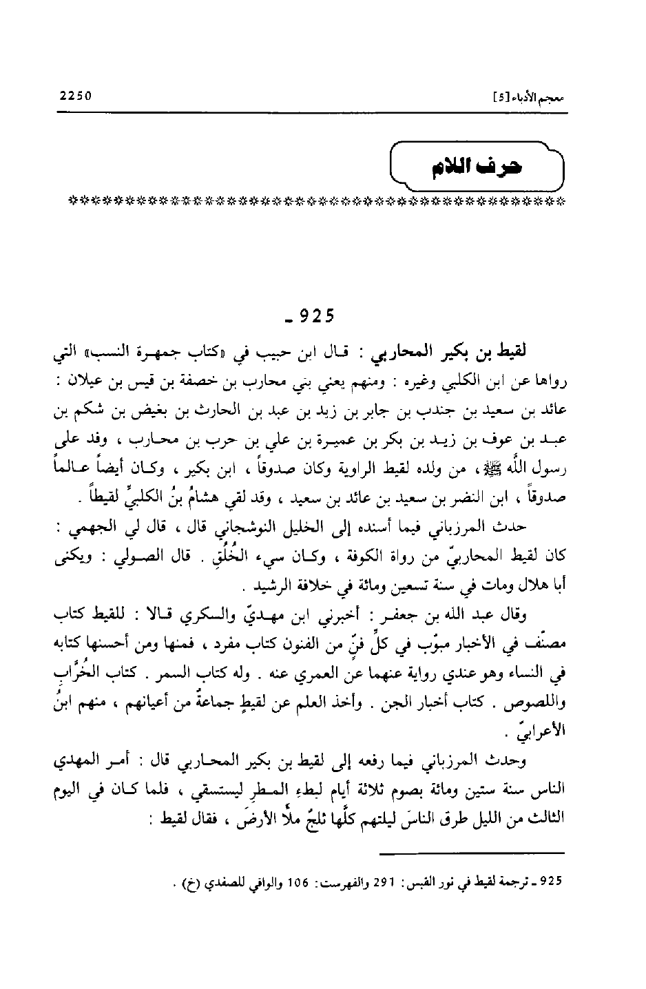 (925) - ترجمة لقيط في نور القبس: 291 والفهرست: 106 والوافي للصفدي (خ) .