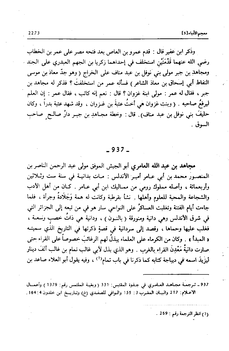 (937) - ترجمة مجاهد العامري في حدوة المقبس (وبغية الملتمس رقم. 1379) وأعمال الاعلام: 217 والبيان المغرب 3: 155 والوافي للصفدي (خ) وتاريخ ابن خلدون 4: 164.