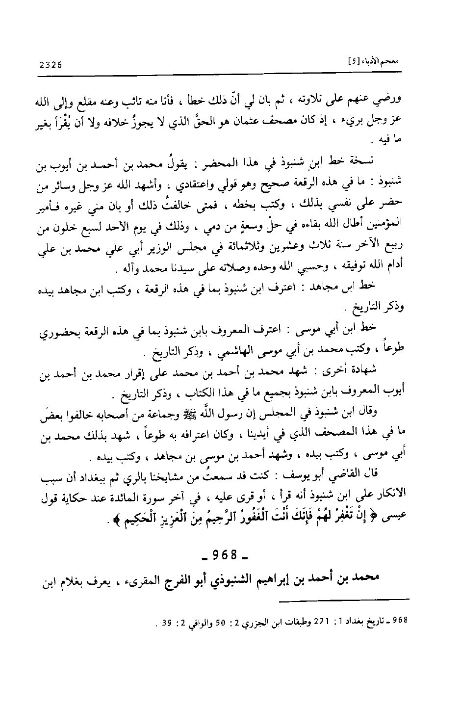 (968) - تاريخ بغداد 1: 271 وطبقات ابن الجزري 2: 50 والوافي 2: 39.