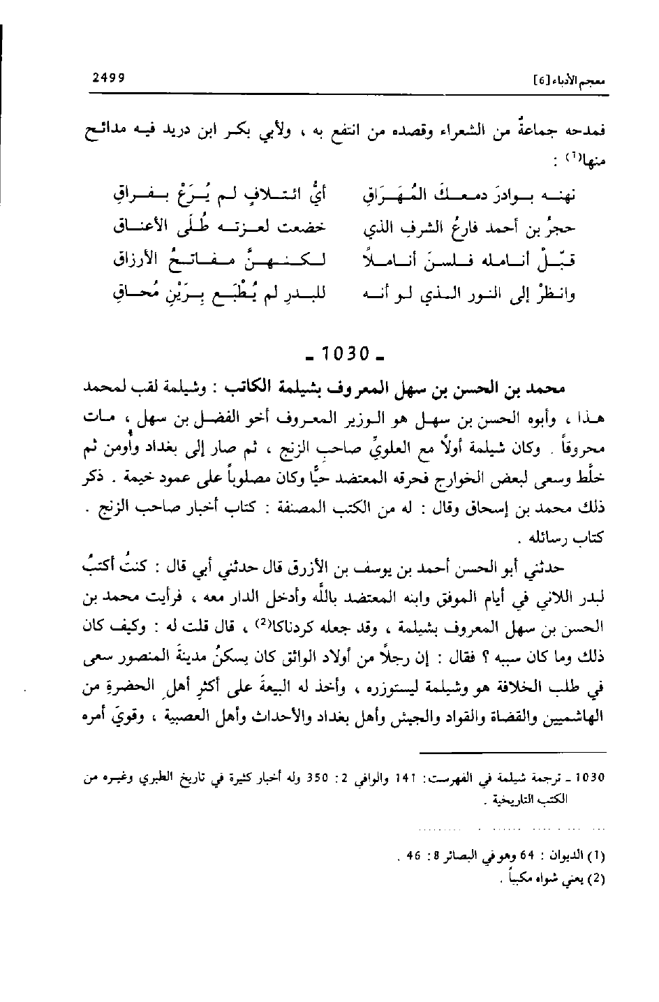 [1030] محمد بن الحسن بن سهل المعروف بشيلمة الكاتب: